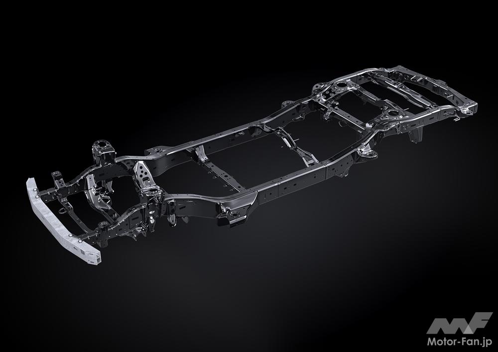 フレームとボディがこじる動きをする際の結合剛性を向上させることで、フレーム車特有のブルブルという低周波振動をより低減、フレーム車ならではの高い堅牢性やロードノイズの遮音性はそのままに、すっきりとした乗り心地を実現させたという。