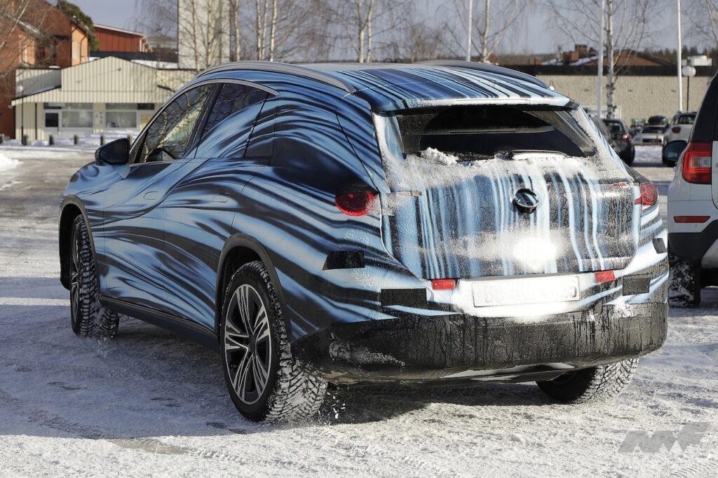 しかし、最新プロトタイプでは、ドアやボンネットに擬装ブロックがなく、風を表現するかのような、スタイリッシュで落ち着いたカモフラージュパターンが施され、より量産可能なプロトタイプに近づいた。奇妙なことに、フロントエンドはアキュラのものに似ている。このSUVはティーザー写真を撮られるために装われているようで、メルセデスはCLAのときのようにコンテンツを少しずつ提供し始める準備をしているのかもしれない。
