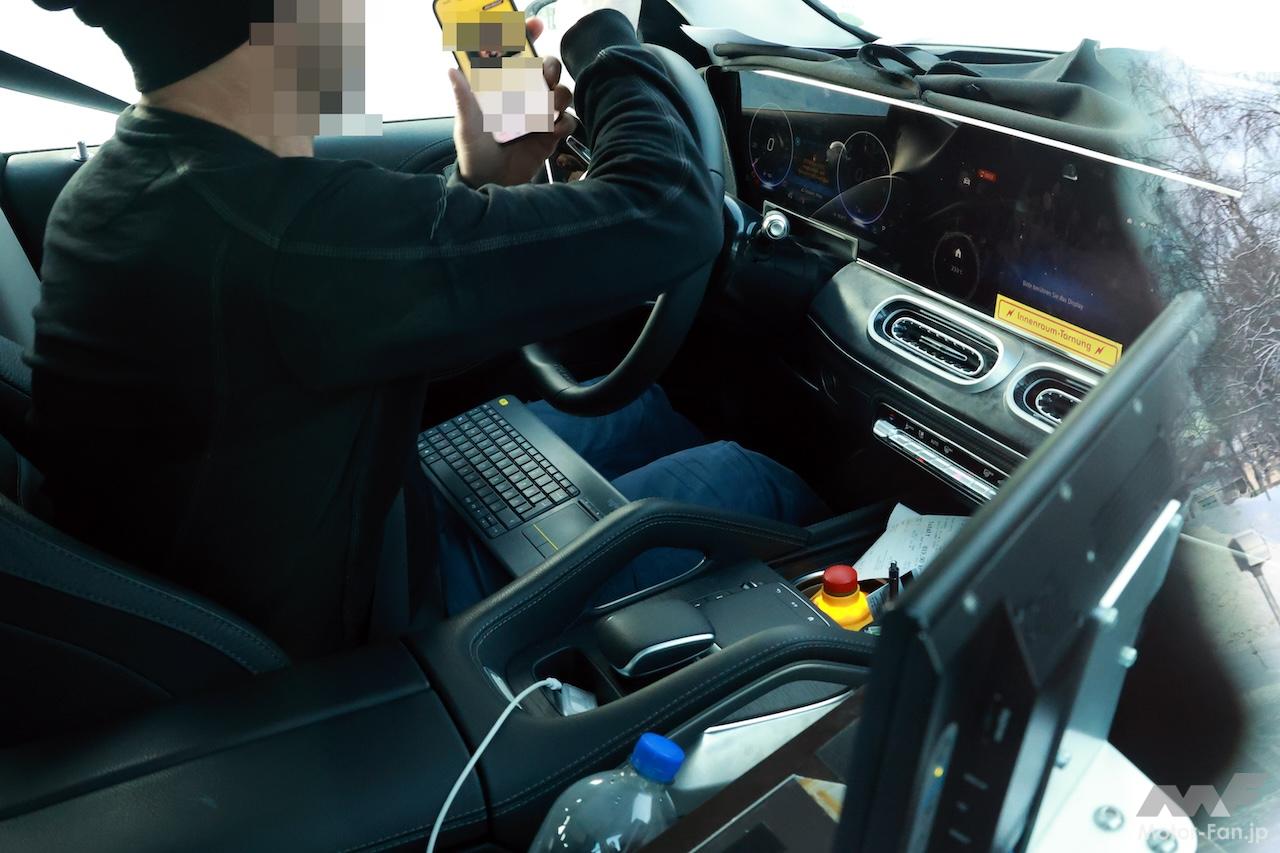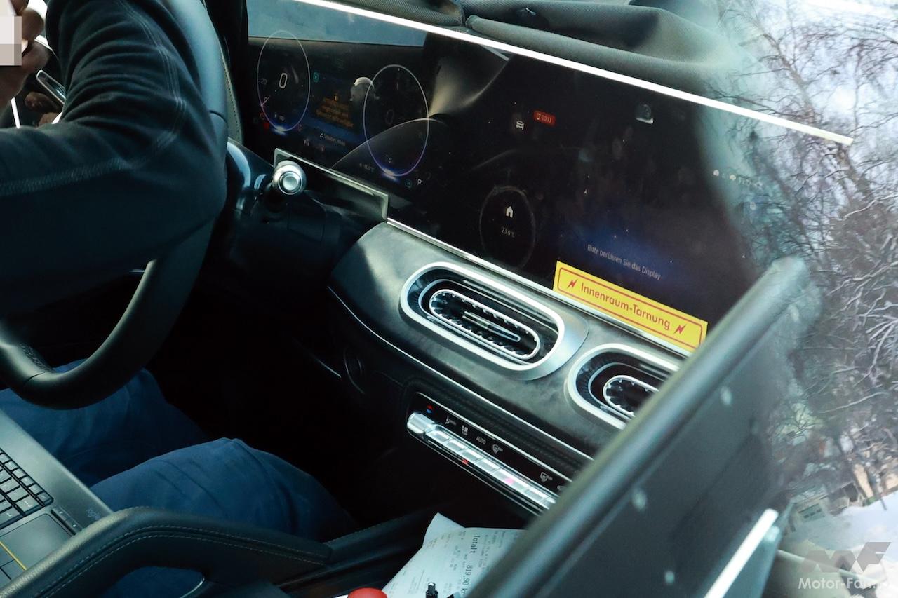 先月、メルセデス・ベンツの最高デザイン責任者であるゴードン・ワグナー氏は、タッチスクリーンで操作する部分が多すぎると、他のデザイン要素が損なわれると語り、いくつかの調査で、タッチスクリーンの操作が安全でない可能性があることがわかっている。布がかけられていないコックピットの画像は、現行型と同じのようだが、隠されている写真を見ると、布が下まで伸びており、56インチのユニットの次世代「エンドツーエンド」ハイパースクリーンを搭載する可能性もありそうだ。