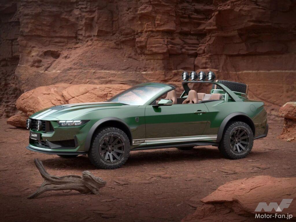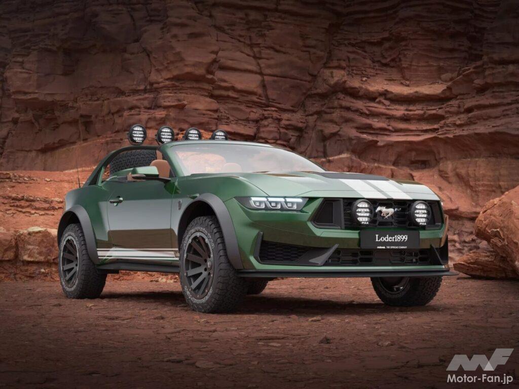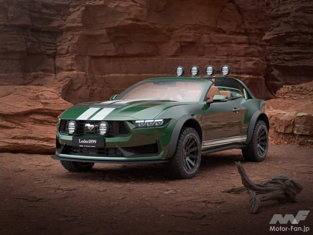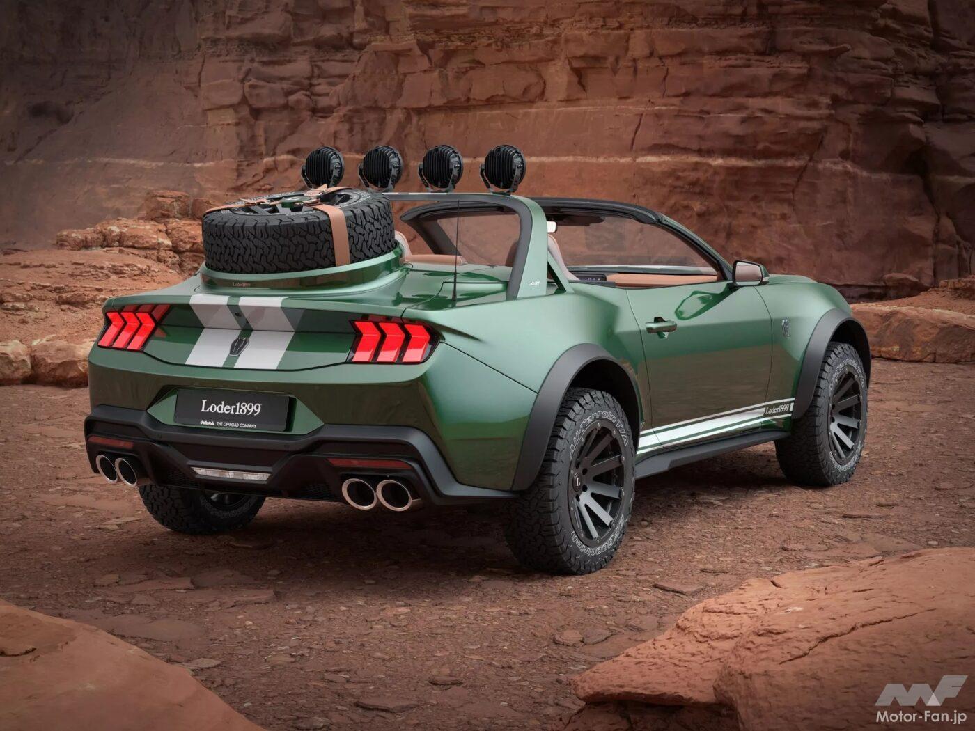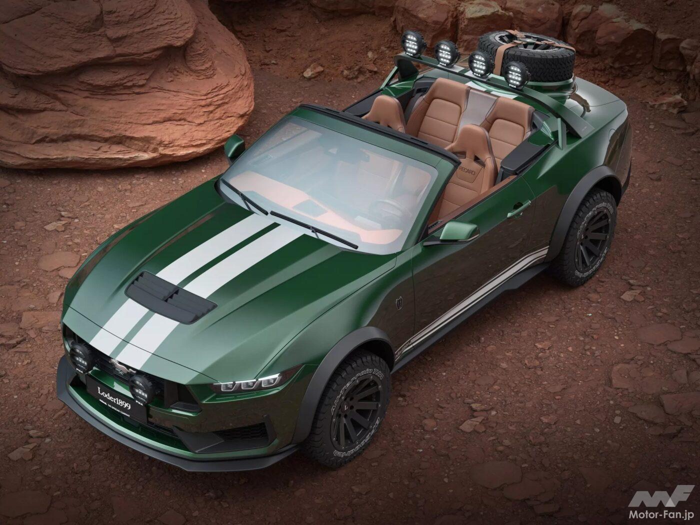 Loder1899のマスタング シェルビーGT 350 カスタムカーは、名画として知られる1968年の映画『華麗なる賭け』のリメイク版である1999年の『トーマス・クラウン・アフェアー』に登場する車(編注:1968年型 フォード マスタングGTAのワンオフ・カスタムカーで通称“オフロード・シェルビー”。ちなみに原典の『華麗なる賭け』ではVWデューンバギーが使用された)にインスピレーションを得てコンセプトを製作、車高が高く、BFグッドリッチのオールテレーンT/Aタイヤをはいたユニークなホイールを特徴としている。また、丸みを帯びたフェンダーフレアと補助ライトも付いている。