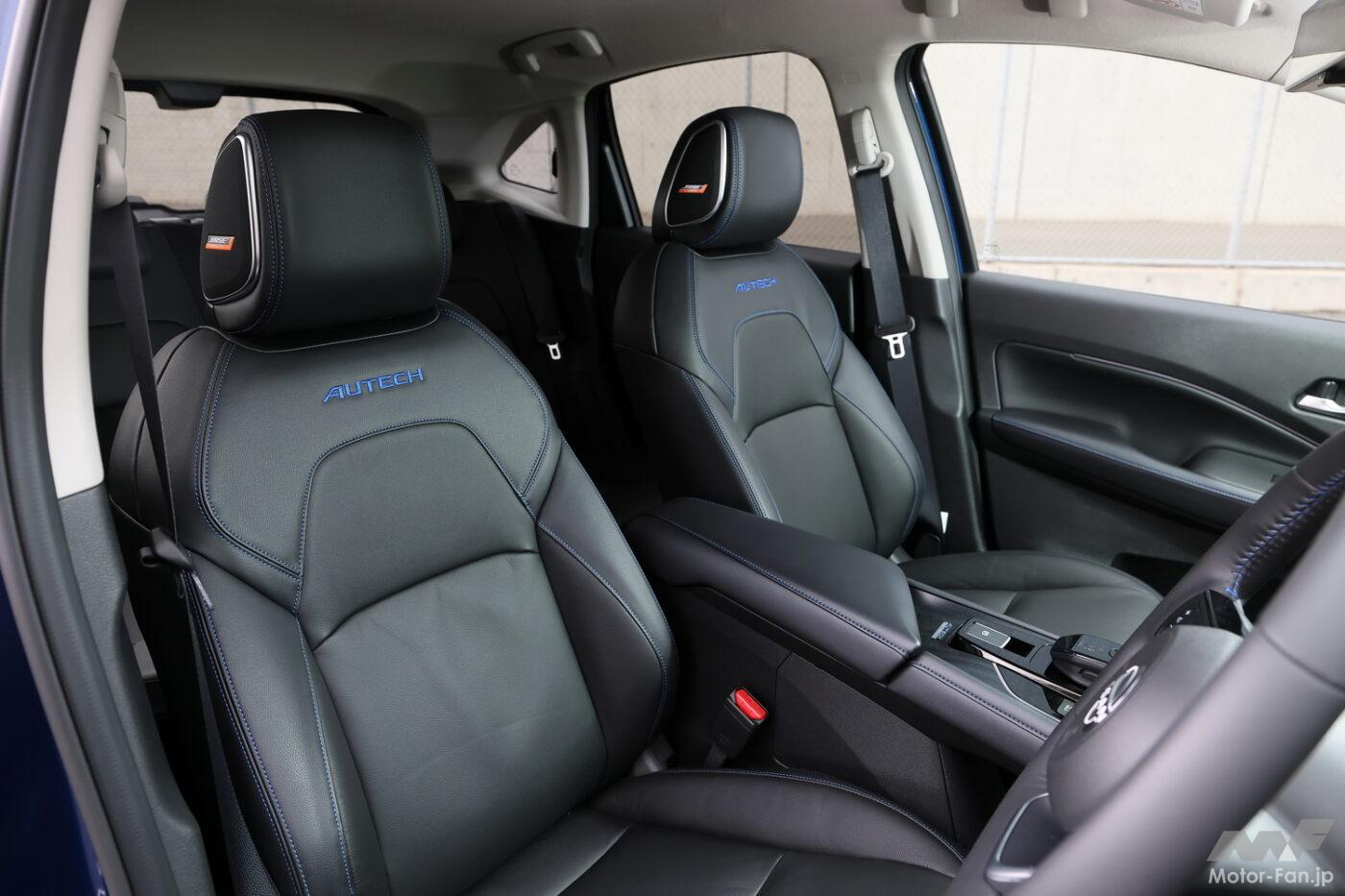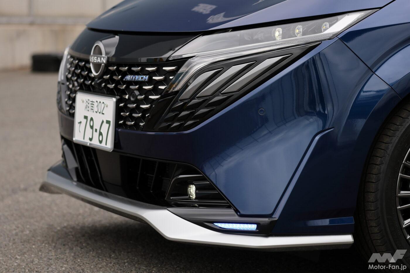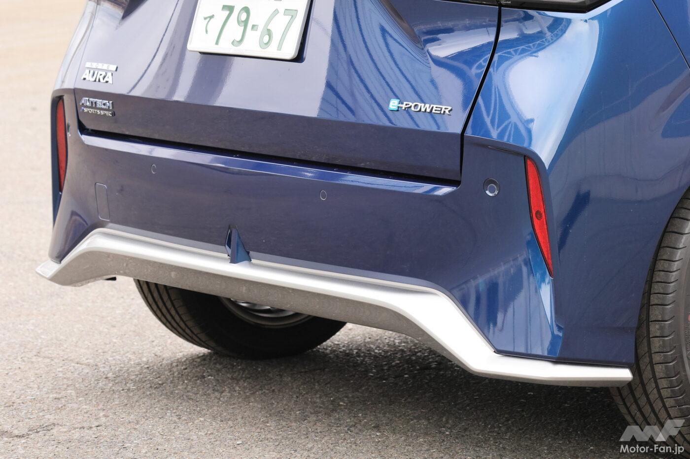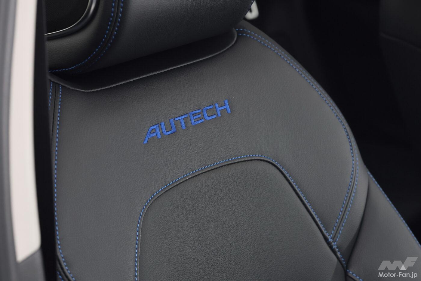 試乗する前に、オーラAUTECH SPORT SPECの変更点を整理しておこう。湘南生まれというAUTECHのルーツを表現するクロームドット加飾のフロントグリルや波打ち際の白波を思わせるメタル調フィニッシュパーツ、海中に差し込む陽の光を思わせる専用デザインのホイールといったアイテムは、これまでのAUTECHと共通だ。