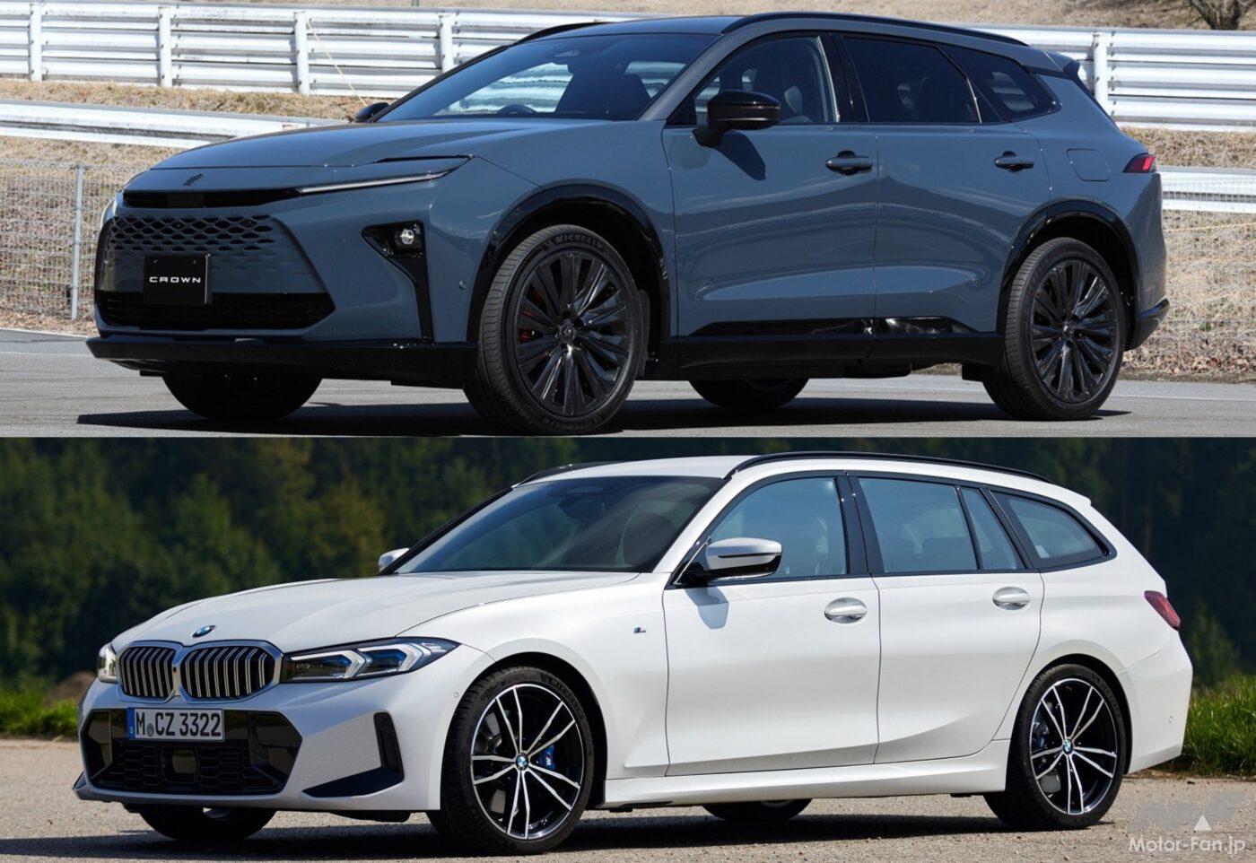 価格的には676万円〜768万円(別格の988万円もあるが)とクラウンエステートの635万円〜810万円と重なるものの、3シリーズツーリングはサイズ的にひと回り小さい。ハイブリッドとPHEVに対してガソリンターボとディーゼルターボとエンジンも異なっており、さらにハイブリッドシステムを備えないなど仕様はかなり異なっている。
