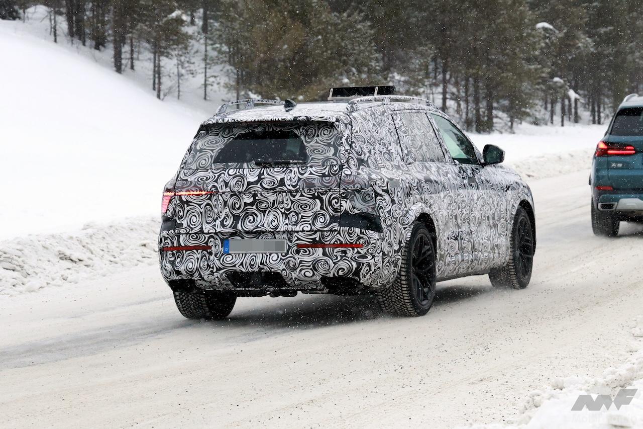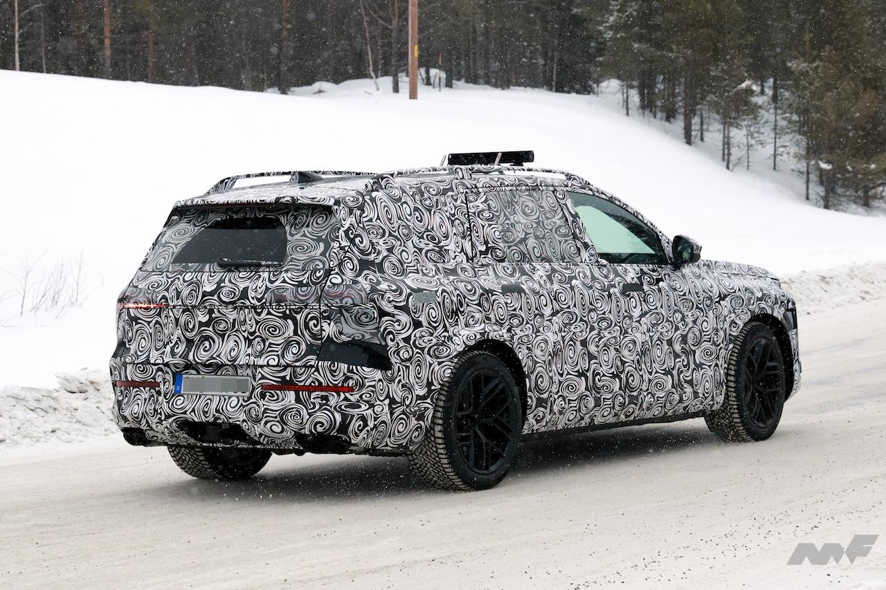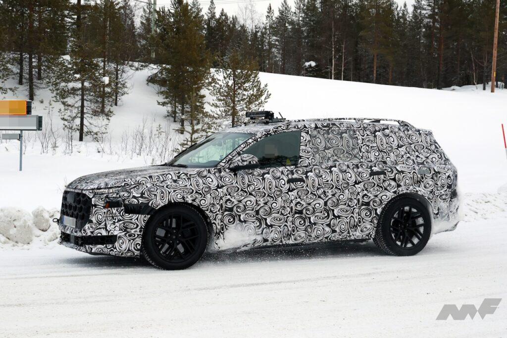 カモフラージュはかなり多いが、それでも2021年のプロトタイプと異なり、SQ9の姿を垣間見ることができる。アウディにはすでにQ7という大型SUVがあるが、真の大型高級SUVとなると、Q7はそれに見合うとは言い難い。Q7の全長は199インチ(5050mm)だが、BMW「X7」が204インチ(5180mm)、メルセデス・ベンツ「GLS」が205インチ(5207mm)と差がある。数値的には大した差ではないように思えるかもしれないが、室内空間となると大きな違いがある。