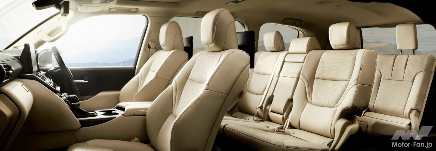 レクサスならではの、上質な乗り心地と高級感のあるインテリアが特徴のラグジュアリーSUVです。パワートレインはハイブリッドモデル(RX500h)やプラグインハイブリッドモデル(RX450h+)が用意されており、静粛性にも優れています。運転支援システム“Lexus Safety System +”を搭載し、安全性も高められています。ただし、価格帯が高めなことと、後席のリクライニング角度が浅めな点は気になるポイントでしょう。