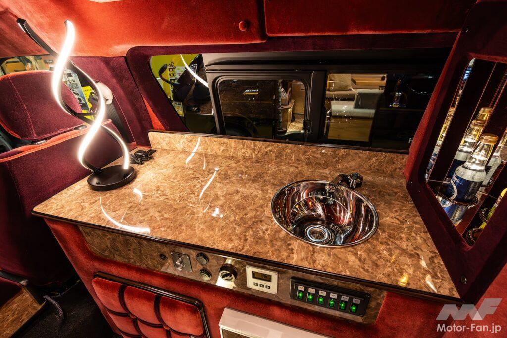 もちろん、シンクや冷蔵庫、ルーフエアコン、リチウムイオンバッテリーといった現代のキャンピングカー装備もインストールされているので、このまま旅に出かけることもできる。とはいえ、これで旅行に行くのもいいが、気の合う仲間同士で人里離れた場所に行き、思う存分カラオケを楽しむといった使い方の方が楽しいかもしれない。