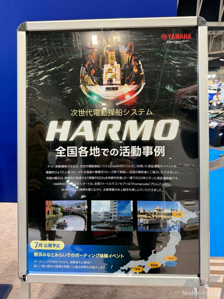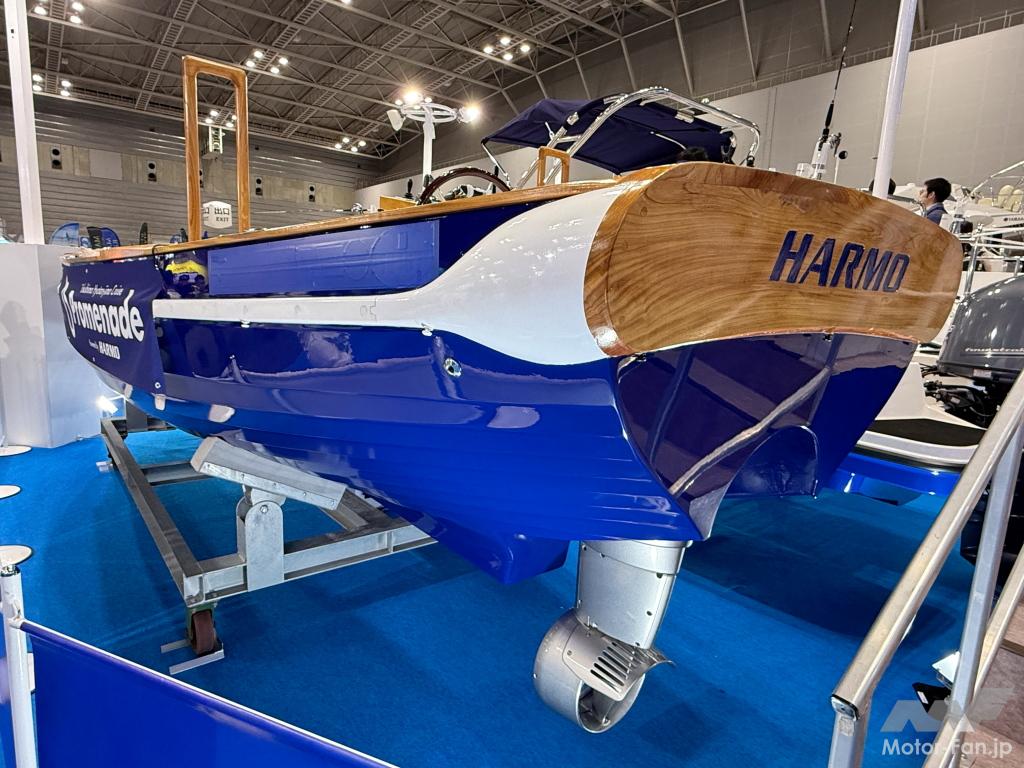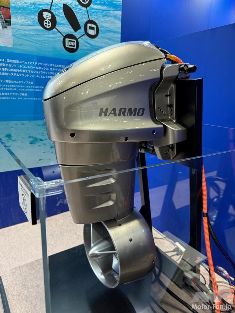 ヤマハ発動機のもうひとつのカーボンニュートラルへの提案が電動操船システムのHARMO(ハルモ)。船外機を電動化したものだが、プロペラの外周に磁力を発生させるモーターを用いている。水中でモーターが回るので、ギヤもなく、非常に静かなのが特長。実際に過去に試乗させてもらったことがあるが、船がエンジンをオフにして惰性で走っているか、手漕ぎボートのような静かさを体験できた。