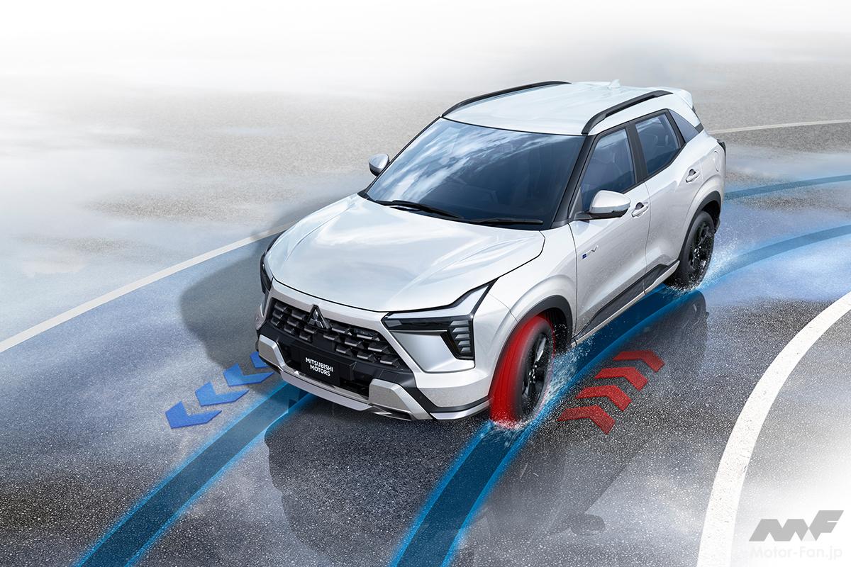 今回追加される新型エクスフォースのHEVモデルは、2024年2月にタイで発表・発売されたエクスパンダ―、エクスパンダークロスに続く三菱のHEVシリーズで、タイにおける電動車の選択肢が拡大される。コンパクトSUVながら、三菱が誇るプラグインハイブリッドEV(PHEV)由来のHEVシステムを搭載し、より高効率で優れた環境性能と力強い加速性能で、その魅力を高めている。FF方式の2WDをベースに、アクティブヨーコントロール(AYC)を始めとした独自の四輪制御技術により、ドライバーの意のままの安全・安心な走りが提供される。また、HEVでありながらドライバーがシチュエーションに応じて積極的にEV走行を選択することができるため、静かさが求められる場面でも周囲に気兼ねなく走行することができる。