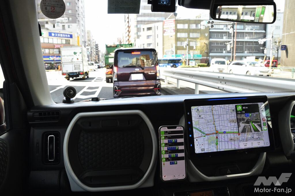 テストコースとしては東京都心の一般道で10分〜15分のルートを設定した。地図表示はヘディングアップで統一。走行時間は平日昼間、使用アプリによって異なるが11時〜15時の時間帯となった。クルマはスズキ・ハスラーだ。