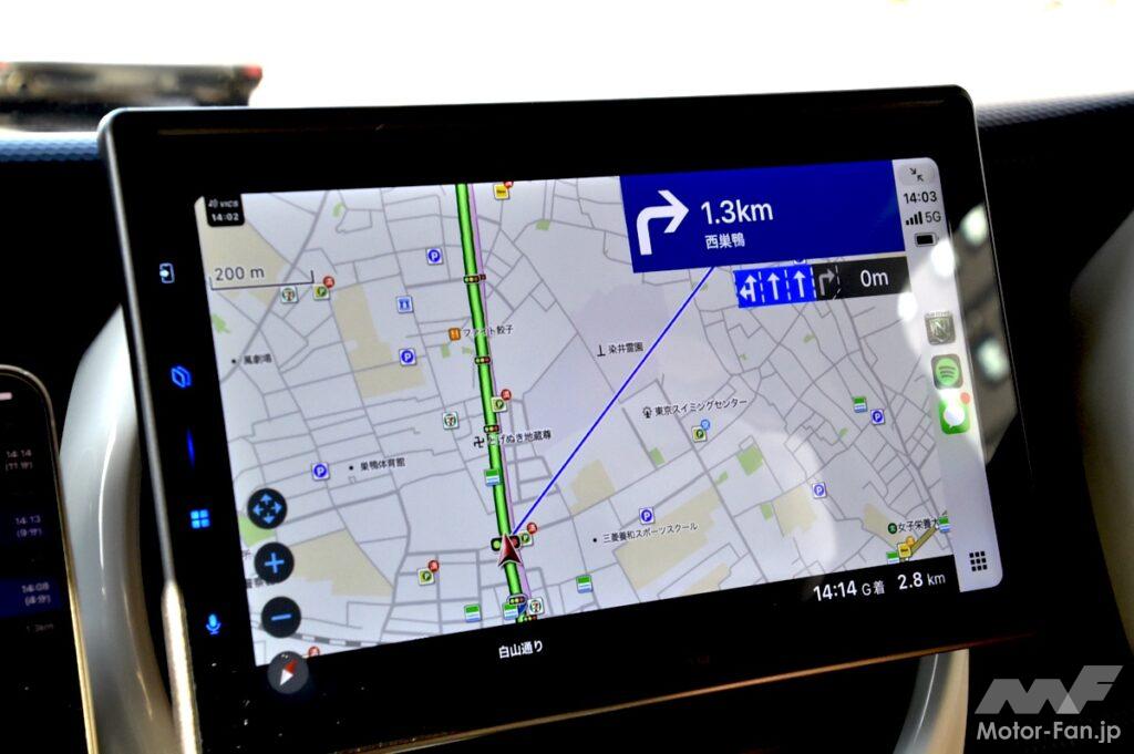 車載カーナビをスマホアプリに落とし込んだような仕様は出色の出来。音声案内の頻度やタイミングはもちろん、基本プランの音声の聞き取りやすさは特に優れていた。特にディスプレイオーディオとの連携は抜群で、スマホ画面も無駄なく使いつつ、地図表示も車載カーナビに慣れていればなおさら、そうでなくても非常に見やすくわかりやすい。