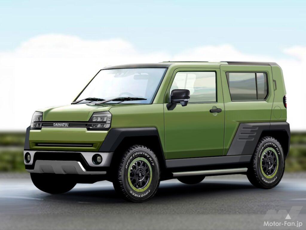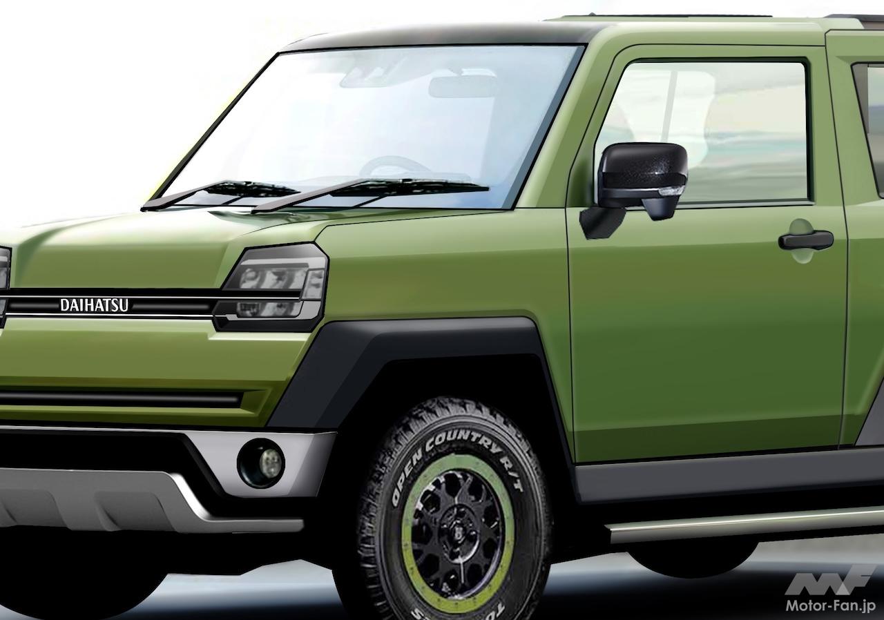 量産型では、ジムニーのようなラダーフレームではなく、DNGA(ダイハツ・ニュー・グローバル・アーキテクチャ)を採用、4WDはオンデマンド式となるという。また、人気の高い5ドア・モデルのジムニー ノマドを意識した5ドア車の可能性が高いようだ。