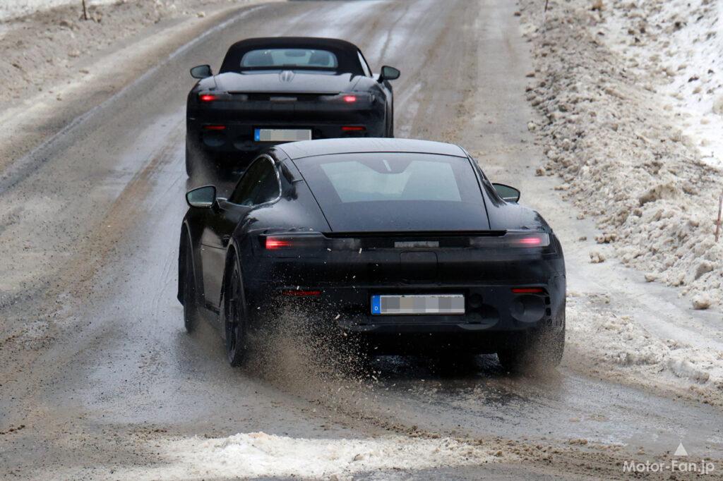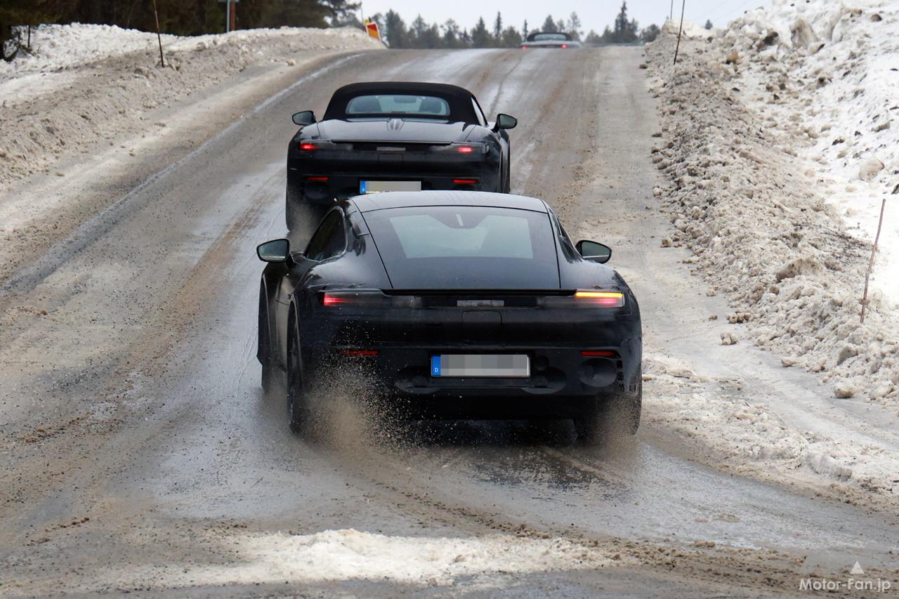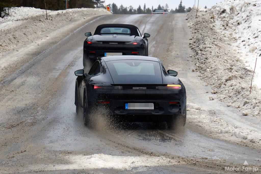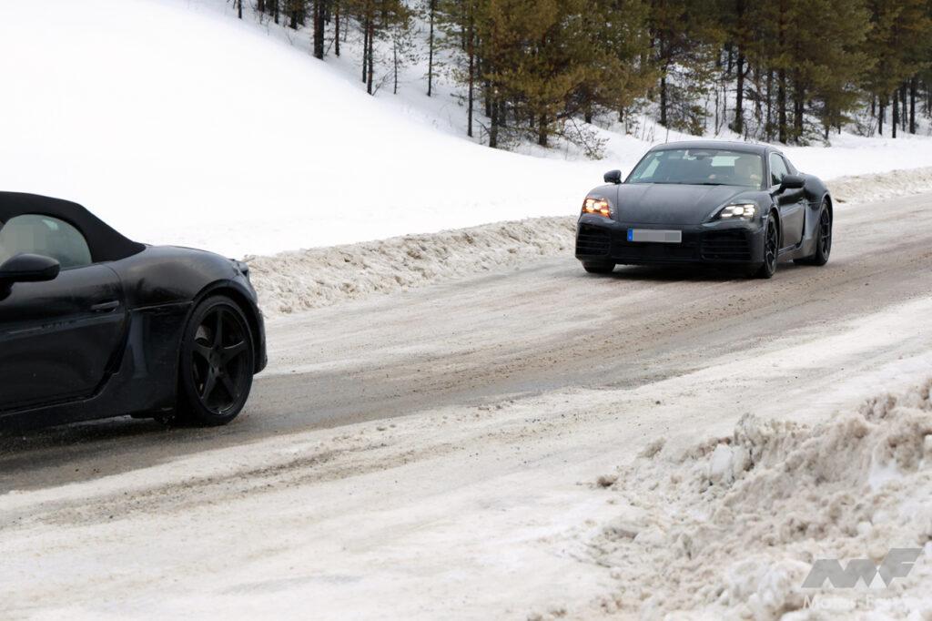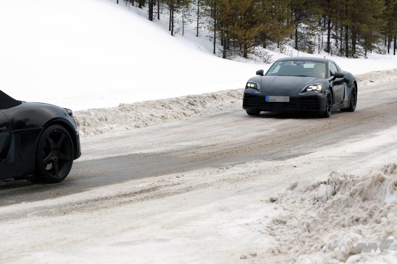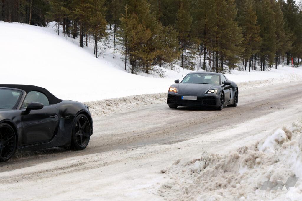 これまでボクスターとケイマンのプロトタイプは、それぞれ個別に捉えてはいたが、今回はスカンジナビアで初めてその姿を同時に捉えた。