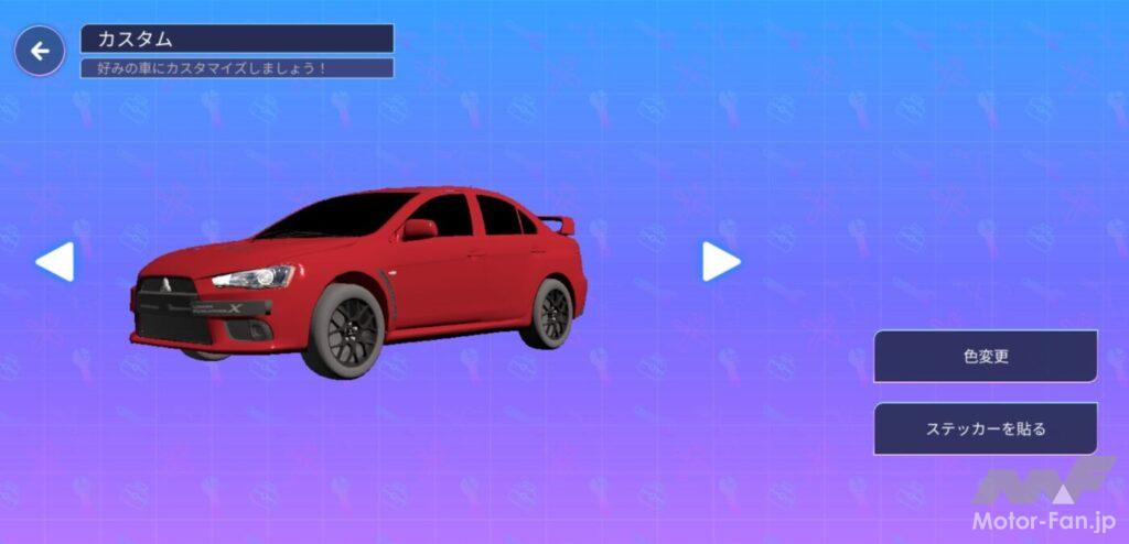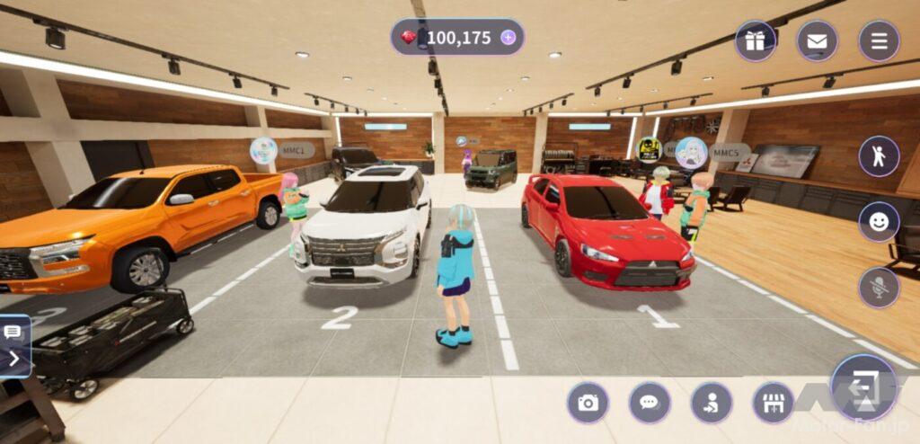 アプリ内では、好みの三菱車を選んで所有し、カラーやステッカーをカスタマイズすることが可能。ガレージには自由に装飾を加えることができ、他ユーザーとの相互訪問もできる。最大の特徴は、実際にその車を操作して、仮想空間内をドライブできる点にある。運転操作は直感的で、複雑な操作を必要とせず、ユーザーは自由に走行しながら風景を楽しんだり、友人のアバターと合流し一緒のドライブをしたりと、まさに「愛車のあるカーライフ」をバーチャルで体感できる。