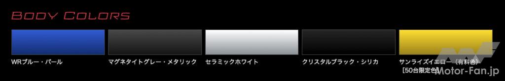 ボディカラーはWRブルー・パールなど5色をラインナップ