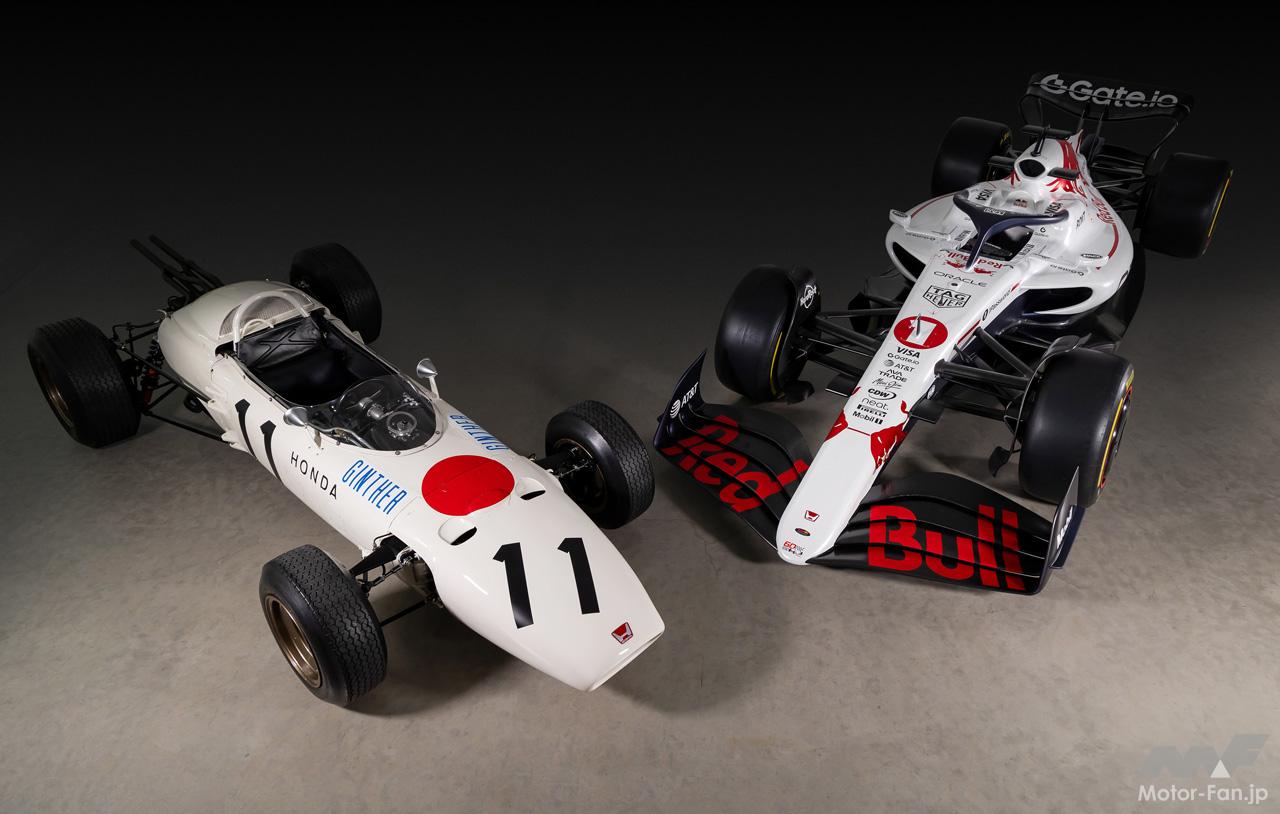 このスペシャルカラーリングは、8年間のパートナーシップへの感謝の象徴として、両社で企画し、実現したもの。デザインコンセプトは、ホンダにF1初優勝をもたらしたマシン「RA272」(※)のオマージュであり、1965年のホンダF1初勝利から60周年を記念。RA272のカラーリングの象徴である「日の丸」や、ノーズに付けられた当時の赤い「H」マーク、ボディ横に描かれたシンプルなHondaロゴを再現している。