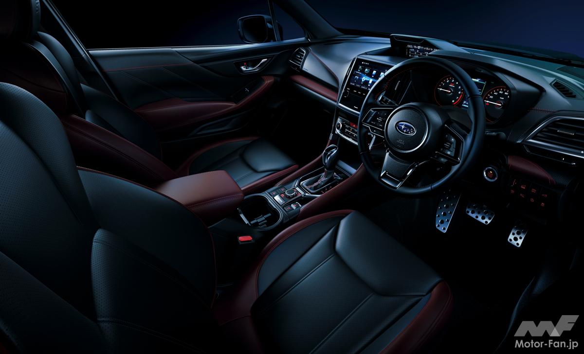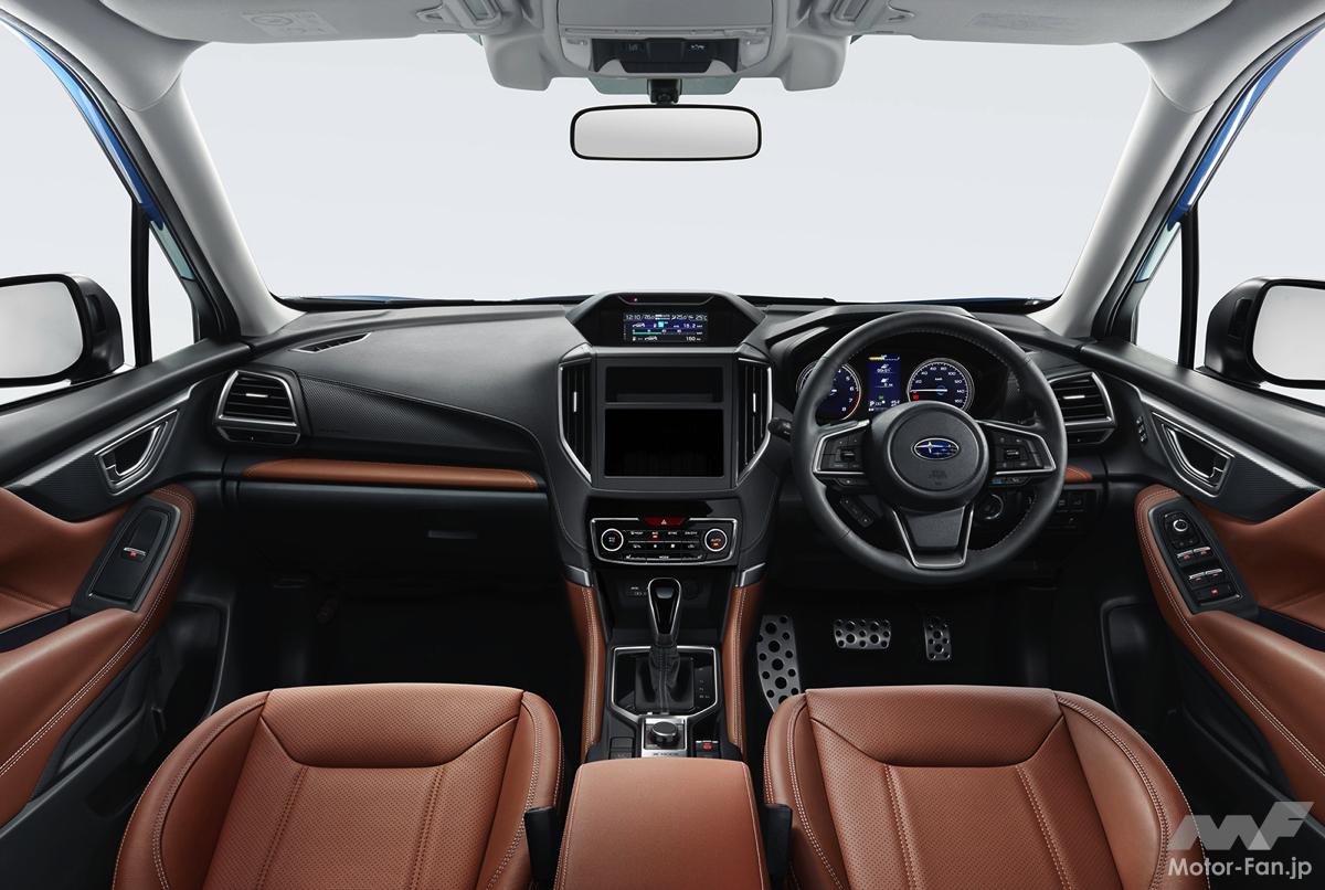 インテリアには、GT/GK型インプレッサのダッシュボード形状をベースとしながら、SUVらしさを取り入れた力強さと開放感を演出。SJ型でも好評だったブラウンの内装色を設定したほか、「X-BREAK」には、専用のカラーアクセントを取り入れ、室内空間もカジュアルでポップな印象としている。
