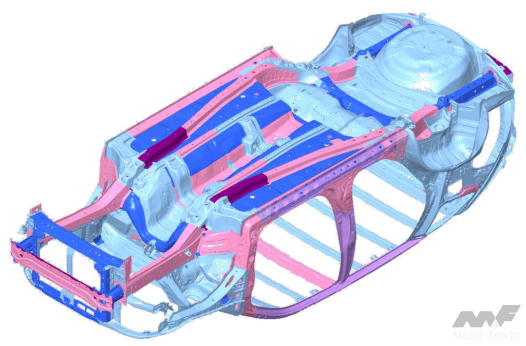 フロントシートは形状を刷新し、座り心地と乗降性を両立。サイドサポート形状の最適化やワイヤー入りウレタンサポートの採用により剛性が向上。サポート性を高めている。また、バックレストのランバー部分に追加されたプレートにより、上半身をしっかりと支える工夫も取り入れられている。