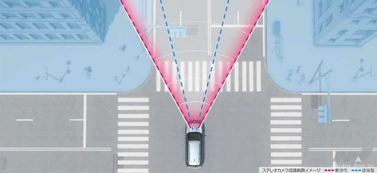 また、後期型ではアイサイトの画像認識や制御ソフトの改良に加え、ステレオカメラを従来の約2倍に広角化することで横方向や交差点右左折時の認識制度を向上させた。