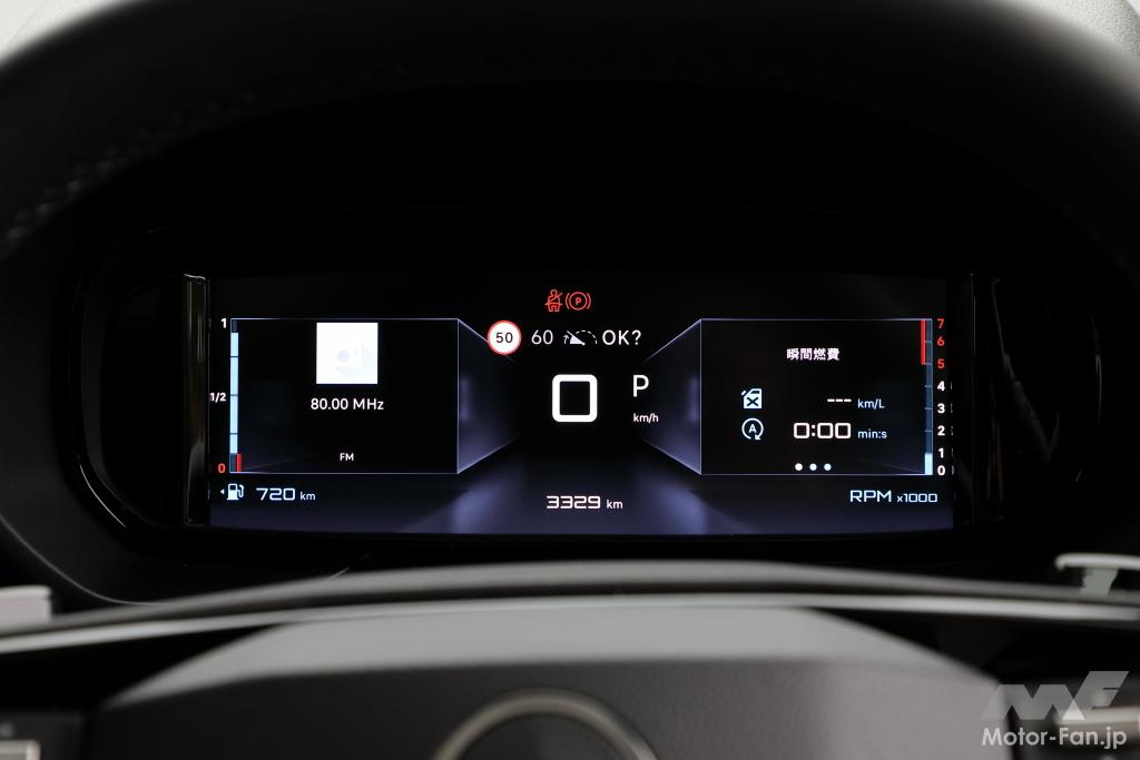 まず、メーターはアナログの針がなくなり、フルデジタル液晶パネルとなった。これにより、表示パターンは大きく分けて4種類から選択でき、これには後述する進化したACC(アダプティブクルーズコントロール)作動状態を大きく表示するモードが元来得意とするロングドライブをさらに楽にしてくれるのに役立ってくれることだろう。