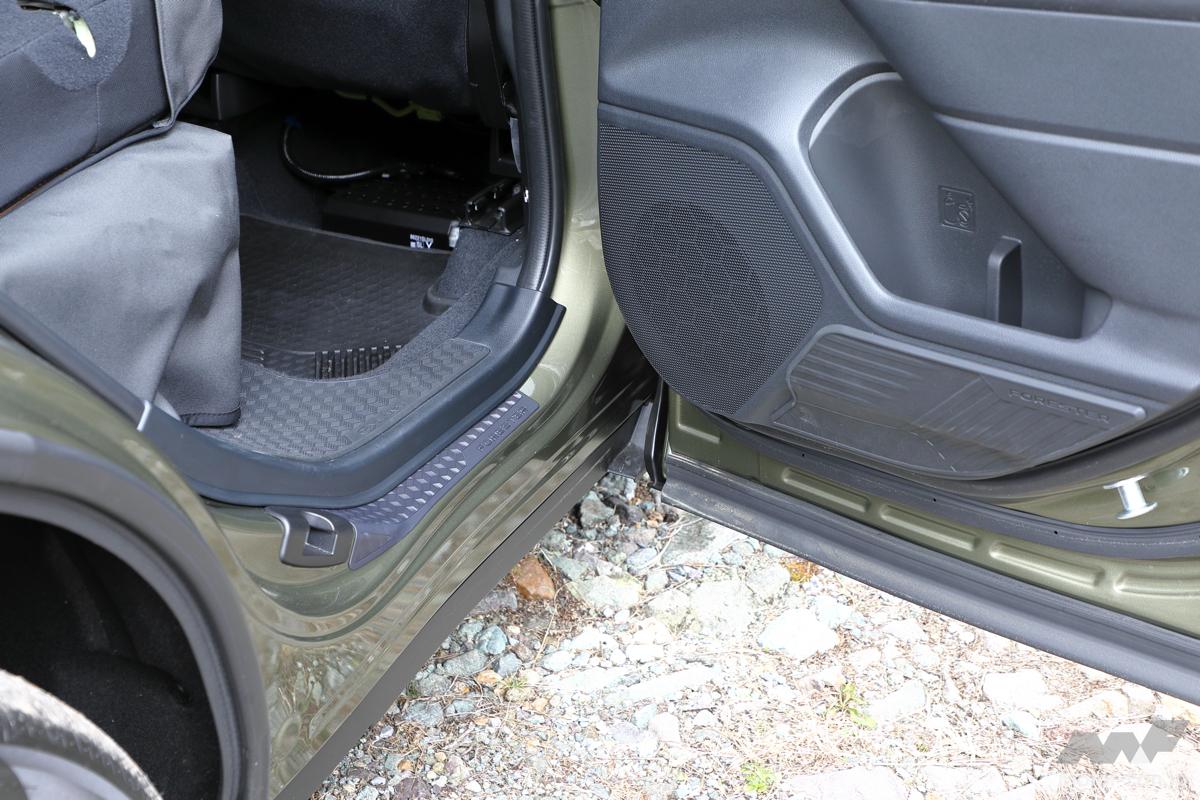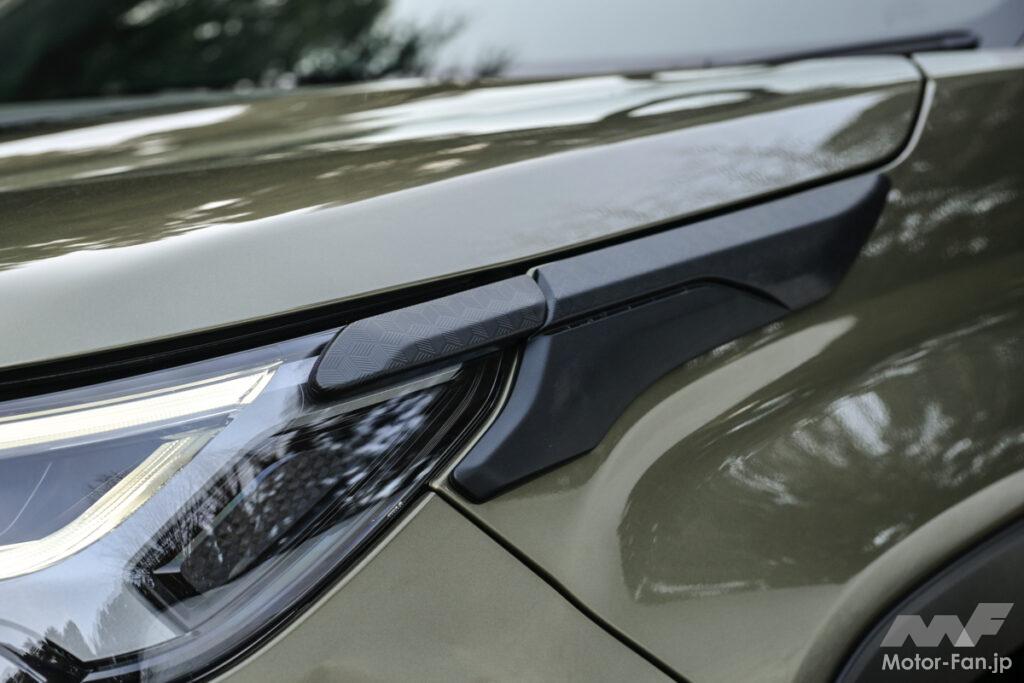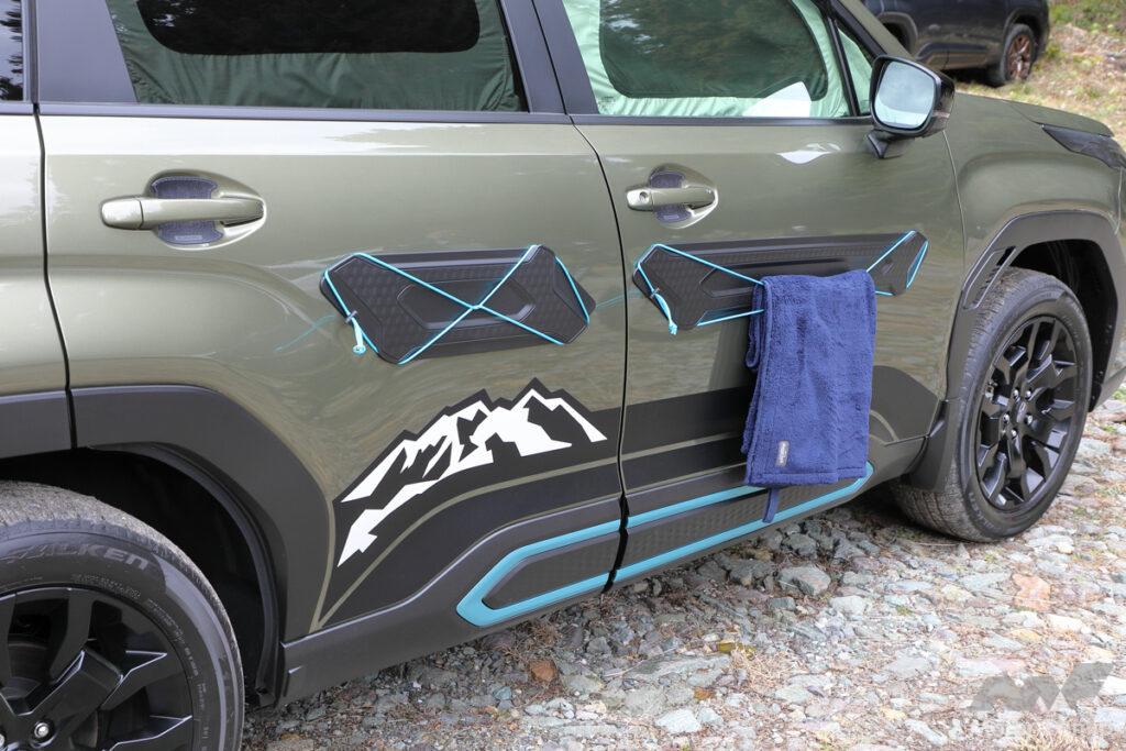 さらに、前後のランプサイドやボディサイドにはプロテクターを配置。これは、自転車やスキー、スノーボードなどのアクティビティギアを立て掛ける際にクルマを保護するのはもちろん、立て掛けたものが倒れないように滑り止めのテクスチャー加工が施されている。