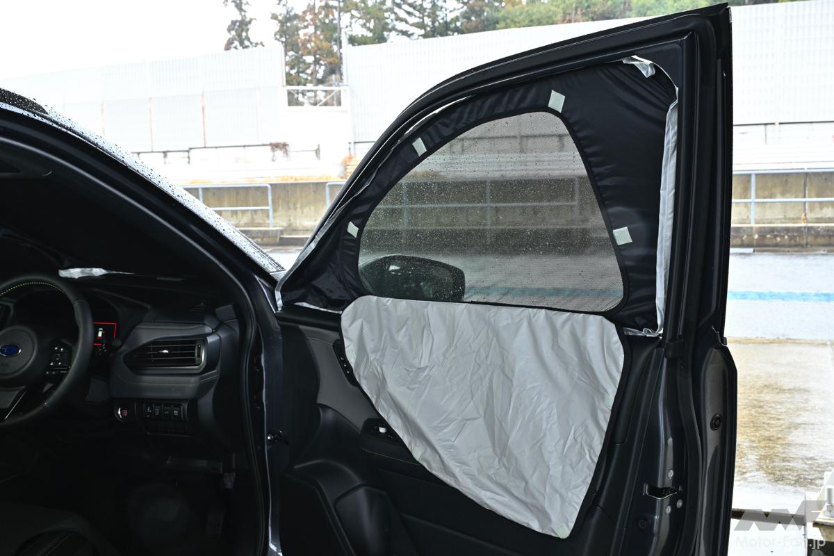 快適な車中泊のための各種アイテムをラインナップ。倒したリヤシートとフロントシートバックとの隙間を埋めるリヤシートバック・エクステンションで、車中泊でも十分な奥行きが確保できるようになる。また、全面8枚セットのウインドウシェードは、サイドウインドウは開閉に加えてネットまで用意されている優れものだ。