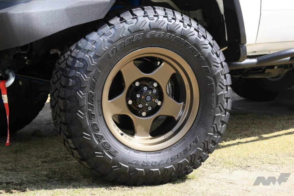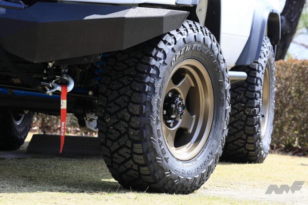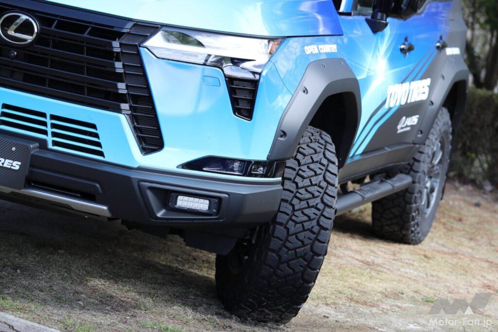 その理由は「オープンカントリーR/Tトレイル」のサイズ展開を見れば、理解できる。発売予定の7サイズは265/75R16から265/50R20までとタイヤ外径が800mm前後の大きなモデルに限られている。つまり、ターゲットはレクサスLXやランクルなどのプレミアムかつクロカン性能の高いSUVというわけだ。
