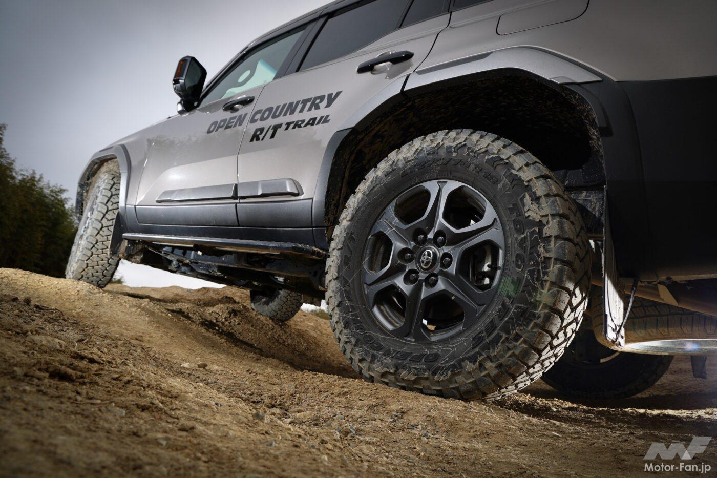 その理由は「オープンカントリーR/Tトレイル」のサイズ展開を見れば、理解できる。発売予定の7サイズは265/75R16から265/50R20までとタイヤ外径が800mm前後の大きなモデルに限られている。つまり、ターゲットはレクサスLXやランクルなどのプレミアムかつクロカン性能の高いSUVというわけだ。