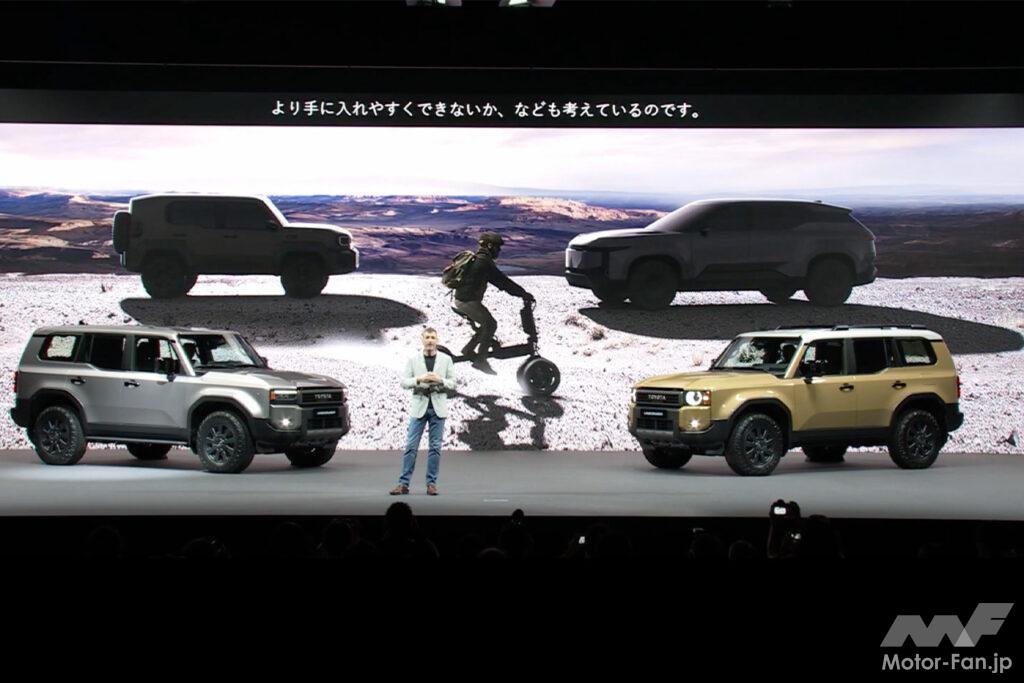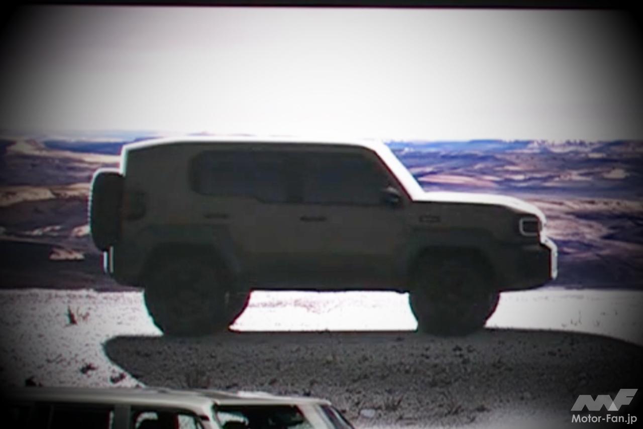 そんな中、2023年頃から巷でその存在が囁かれ始めたのが、“ランドクルーザーミニ”だ。FJクルーザーの後継モデルは長年噂の域を出なかったが、2023年に行われたランドクルーザー250のワールドプレミアの会場で、その紹介映像に謎のコンパクトサイズモデルが映っていたことから一気に現実味を帯びた。さらに同年11月にトヨタが「ランドクルーザーFJ」の名を商標登録したことで、実現性が見えてきたのである。