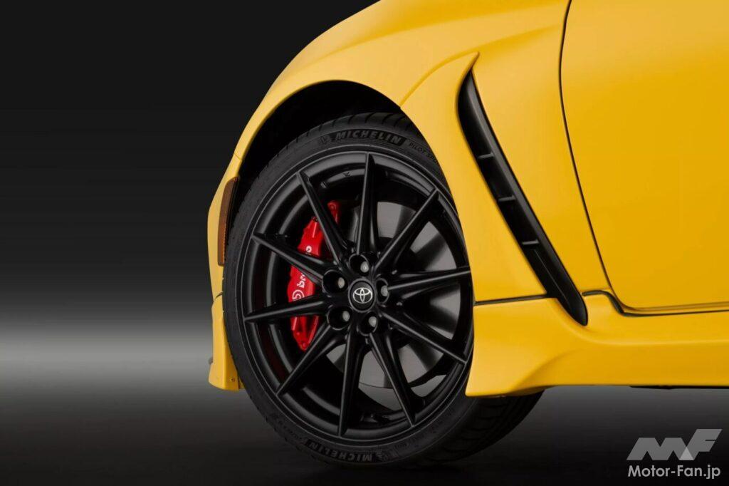 一見して差別化されているのは、明るいユズイエローの塗装だろう。どこかで見覚えがある方も少なくないと思うが、この色は、2015年に発売されたサイオン FR-S 1.0(編注:トヨタが北米で2003年から2016年まで展開した“サイオン”ブランドで販売された北米版の初代86)で初めて使用されており、サイオン FR-Sの復刻版とも言えそうだ。