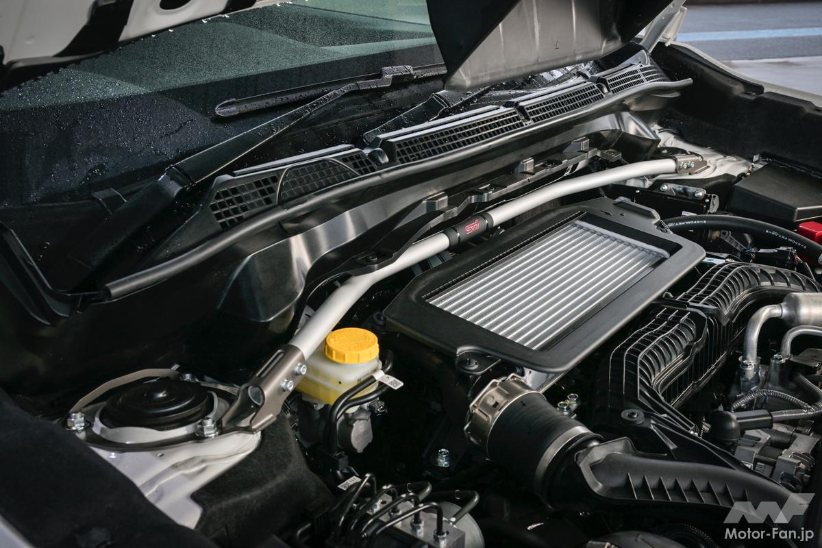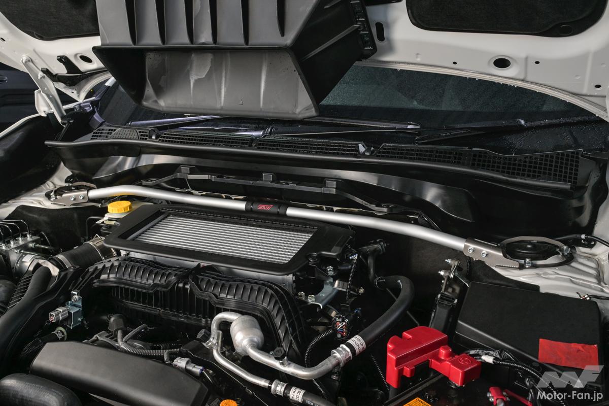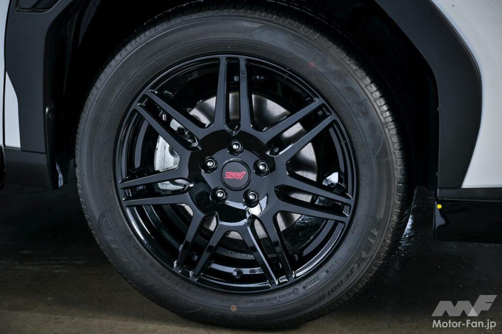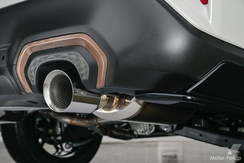 「STI Style」で装着されるアクセサリーはもちろんSTI謹製。エアロやアルミホイールといった機能を伴ったエクステリアパーツはもちろん、マフラーやタワーバーなどのパフォーマンスパーツも揃う。
