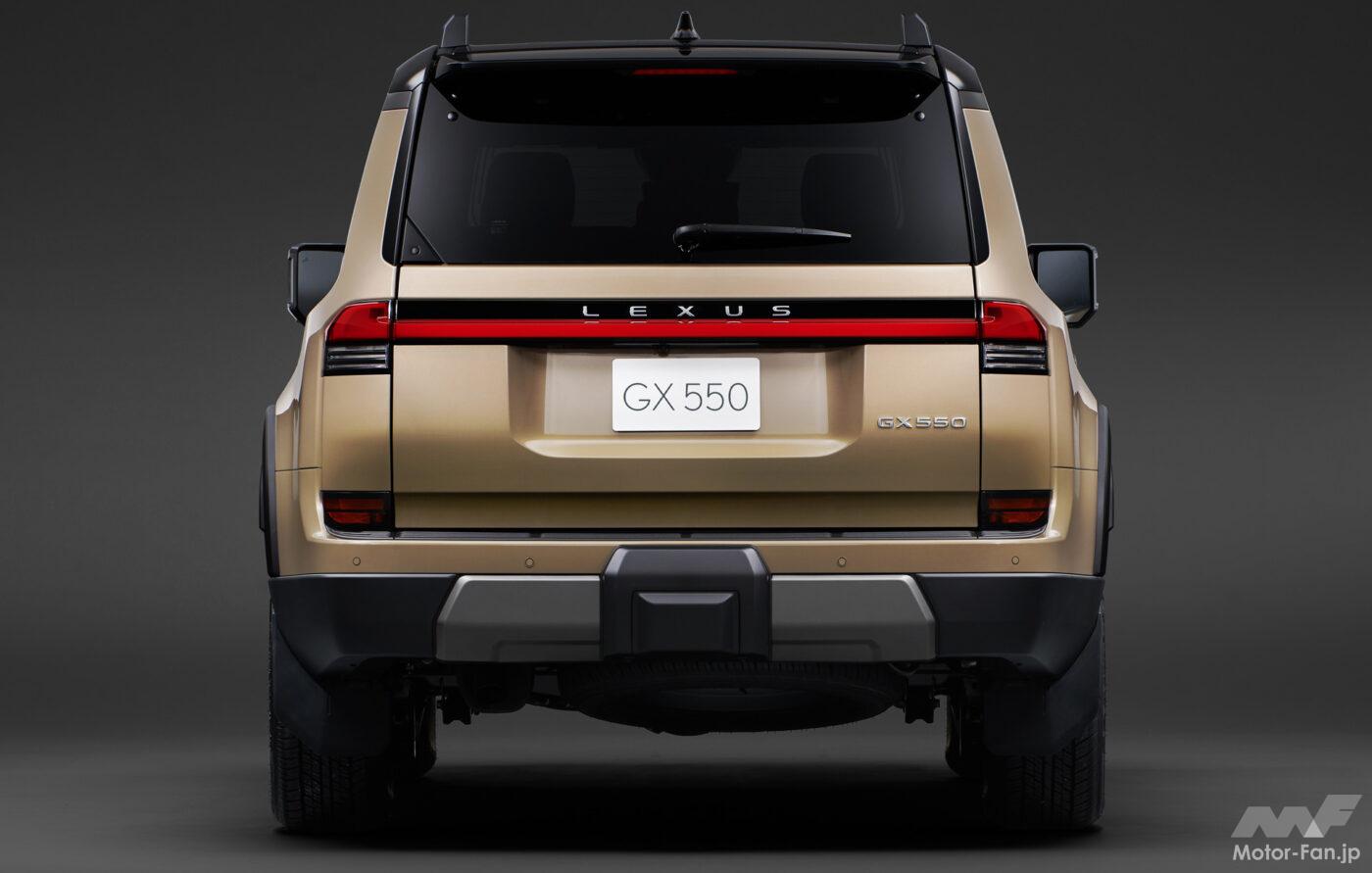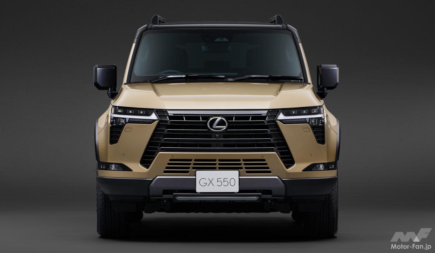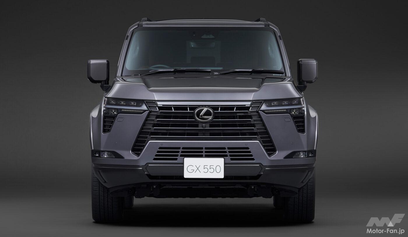 LEXUS GX550は車両開発コンセプトを「ザ・プレミアム・オフローダー」として、過酷な悪路から街中の舗装路に至るまで、ドライバーがクルマと共に過ごす様々なシーンで心高まる体験が提供される。GA-Fプラットフォームの採用や、静粛性と出力、燃費を高次元でバランスさせたV6ツインターボエンジンの搭載など、洗練された基本性能のほか、オフロード走行性能を追求したパッケージングや、路面追従性を向上させるE-KDSS(Electronic-Kinetic Dynamic Suspension System)などによる高い悪路走破性を実現。更に、オンロード走行性能では、各部位の高剛性化やEPSの採用などによりもたらされるリニアなステアリング応答性など、本格オフローダーでありながらもLEXUSらしい乗り味が実現された。
