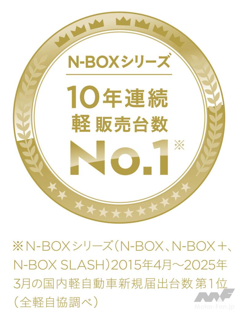 N-BOXは、ホンダに脈々と受け継がれるM・M思想(※)に基づく、広く開放的な室内空間を独自のセンタータンクレイアウト技術によって実現したほか、全タイプに標準装備とした先進の安全運転支援システム“Honda SENSING(ホンダ センシング)”、優れた走行性能・燃費性能などにより、それまでの軽自動車の概念をくつがえす独自価値と魅力を創出したことが評価され、多くのユーザーに選ばれている。