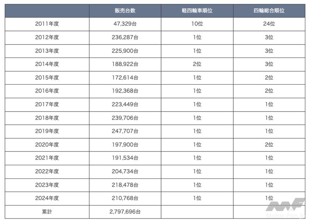 ●N-BOXシリーズ年度販売台数推移(全軽自協調べ)