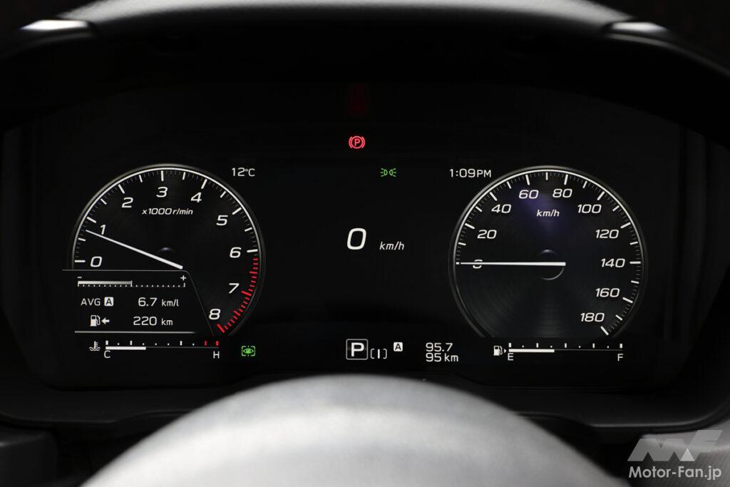 メーターはいずれもクラスター内に収めるコンサバティブなレイアウト。フォレスターは表示の変更も可能だが、基本は2眼レイアウトで、右が速度計、左がパワーメーター(ストロングハイブリッド)か回転計(ガソリンターボ)となっている。