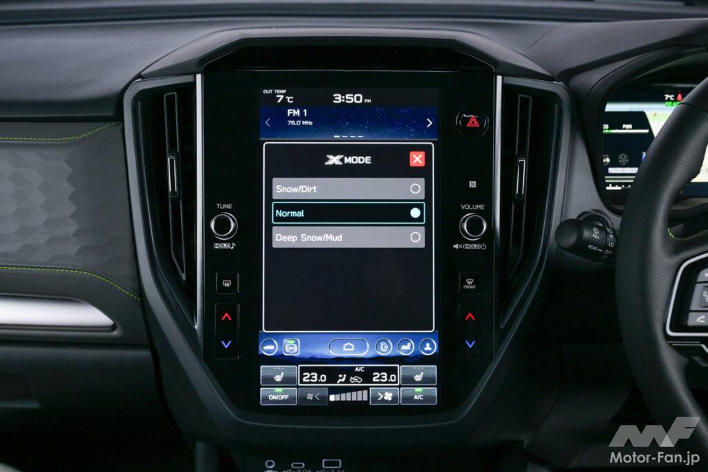 フォレスターにはスポーツモードを選べる「SI-DRIVE」と悪路走破性を高める「X-MODE」が用意される。一方でCX-5もスポーツモードやオフロードモードを選べる「Mi-Drive(マツダインテリジェントドライブセレクト)」と、オフロード走行を助ける「オフロード・トラクション・アシスト」が備わる。