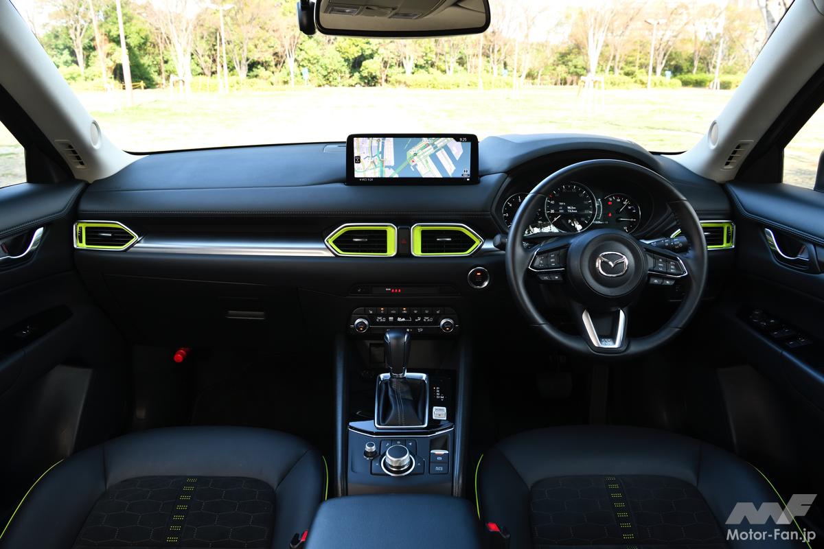 一方でCX-5もマツダに共通する横長の10.25インチディスプレイをダッシュボード上部に配置するレイアウトだが、今となってはディスプレイのサイズが数字ほどには大きくない印象だ。