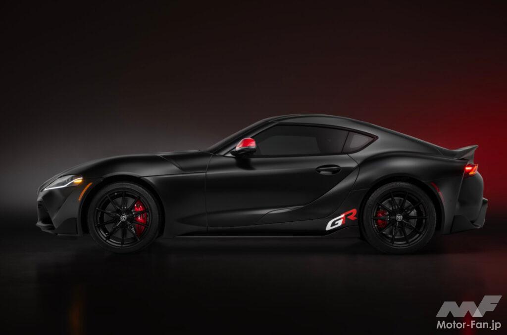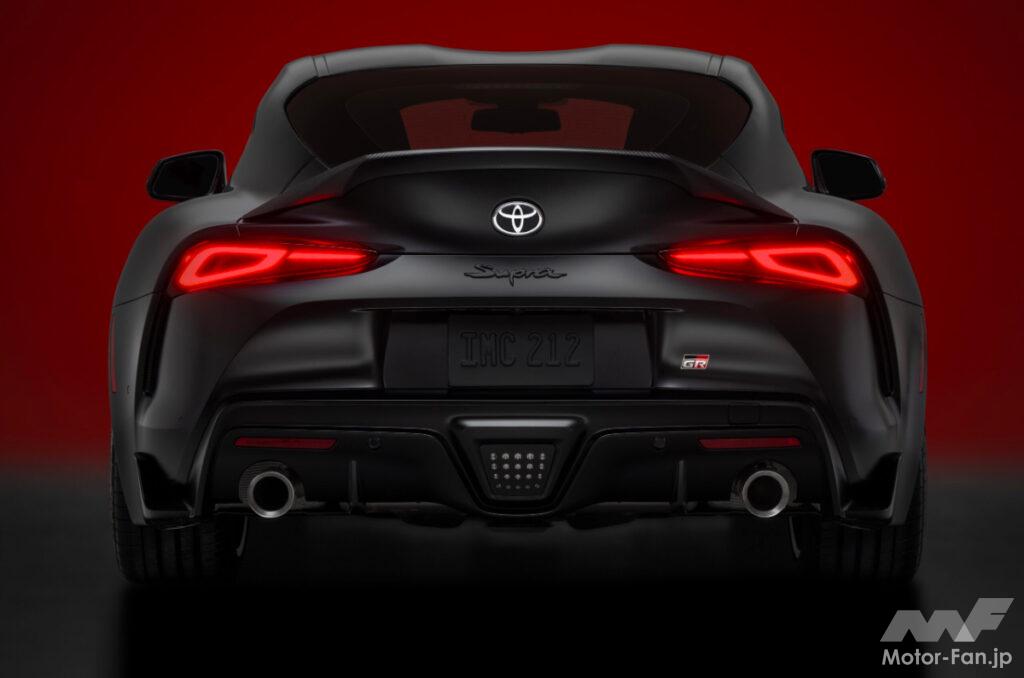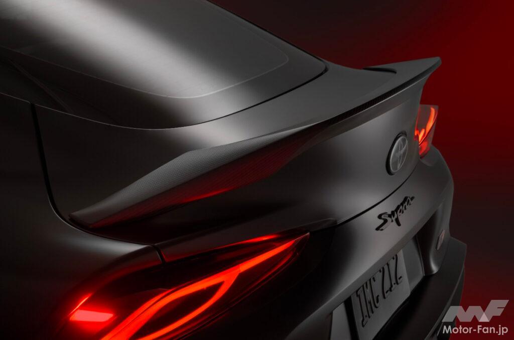 GRスープラ MkV ファイナルエディションは、世界中のGT4カテゴリーレースで活躍するGRスープラ GT4 EVO2レースカーからインスピレーションを得ており、2つの新しい専用マットカラー、バーンアウトとアンダーカバーから選べるGT4スタイルパック・オプションも用意されている。このスタイルパックには、エクステリアにGT4をイメージしたサイドグラフィック、マット仕上げのカーボンファイバー製ダックテール・リヤスポイラー、マットブラックのリヤ・スープラエンブレム、赤いミラーキャップが含まれている。