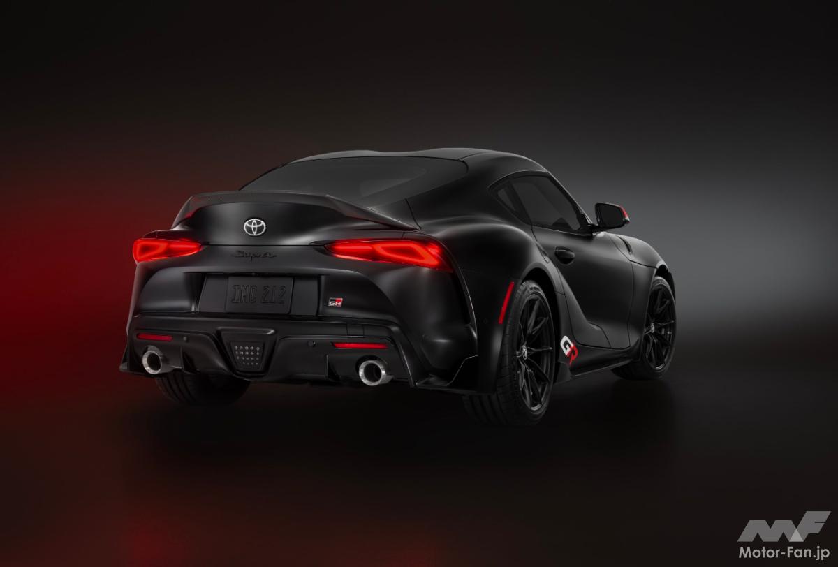 GRスープラ MkV ファイナルエディションは、世界中のGT4カテゴリーレースで活躍するGRスープラ GT4 EVO2レースカーからインスピレーションを得ており、2つの新しい専用マットカラー、バーンアウトとアンダーカバーから選べるGT4スタイルパック・オプションも用意されている。このスタイルパックには、エクステリアにGT4をイメージしたサイドグラフィック、マット仕上げのカーボンファイバー製ダックテール・リヤスポイラー、マットブラックのリヤ・スープラエンブレム、赤いミラーキャップが含まれている。
