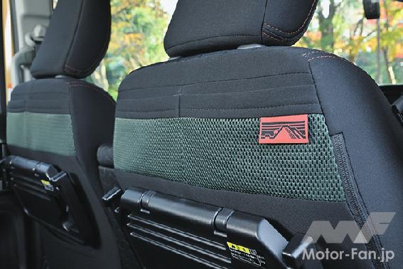 新型スペーシアギア最大の特徴はエクステリアだ。ひと目でギアとわかる顔つきやフロント&リヤ部分のスキッドプレート、GEARのロゴが入るサイドドアガーニッシュ、サイドアンダーガーニッシュ、ルーフレール、そしてプラスのネジをモチーフにした15インチアルミホイールなどによって標準車、カスタムとは別物の佇まい、デザインを採用する。インテリアは基本的にスペーシアに準じているものの、基本内装色をブラックとし、低彩度のカーキグリーンと、随所にアクセントカラーとしてオレンジを組み合わせた、タフに使い倒せるアウトドアギアのような道具感が強調された世界を演出。シートは撥水加工が施され、ラゲッジルームも防汚タイプに変更。キャンプシーンやSURF&SNOWのスポーツシーンでガンガン使えるように仕立てられているのである。