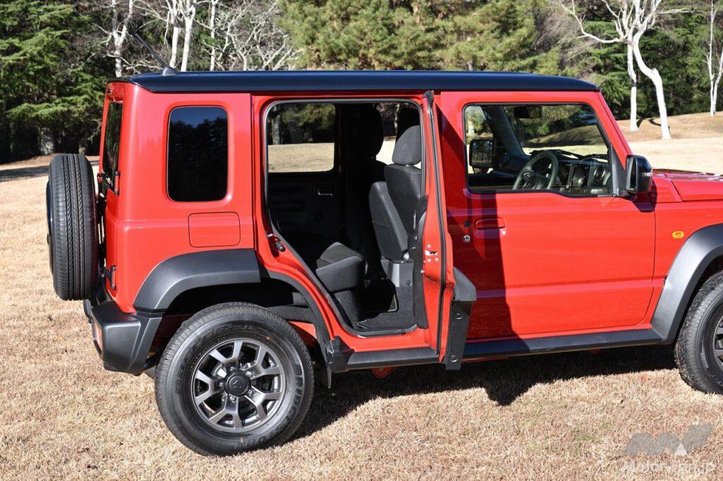 インドで5ドアのワールドプレミアが行われた2023年1月、世界のジムニーファンは熱狂の中でそれを迎えた。中でも、狂喜したのは日本のファミリーユーザーではないだろうか。というのも、先行して販売されていた「ジムニー」と「ジムニーシエラ」は、共に3ドア車。かつては、日本製四輪駆動車の多くに3ドアショートボディが設定されていたが、後席への乗降性の悪さや荷室の狭さから、90年代半ばくらいから需要が下がっていった。