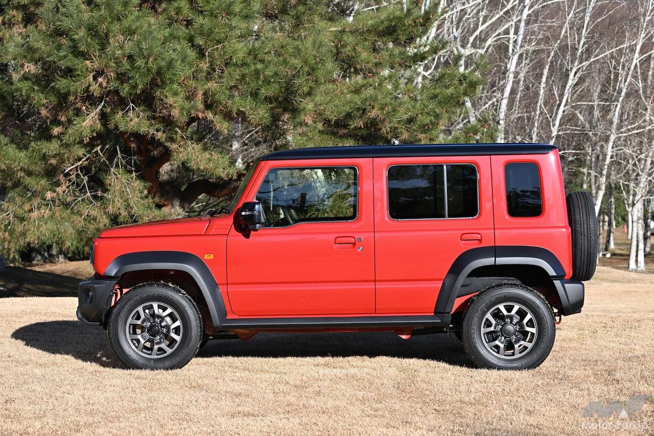 インドで5ドアのワールドプレミアが行われた2023年1月、世界のジムニーファンは熱狂の中でそれを迎えた。中でも、狂喜したのは日本のファミリーユーザーではないだろうか。というのも、先行して販売されていた「ジムニー」と「ジムニーシエラ」は、共に3ドア車。かつては、日本製四輪駆動車の多くに3ドアショートボディが設定されていたが、後席への乗降性の悪さや荷室の狭さから、90年代半ばくらいから需要が下がっていった。
