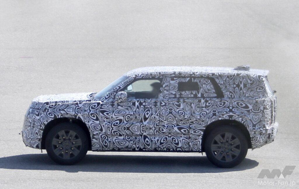 捉えた車両は、初期プロトタイプのため、サイドパネルまで厳重にカモフラージュされている。だが、現行のディフェンダーと比較すると、フロントガラスがよりスポーティに傾斜し、ヘッドライトがよりスリムになり、Cピラーは真上ではなく前方に傾いていることがわかる。
