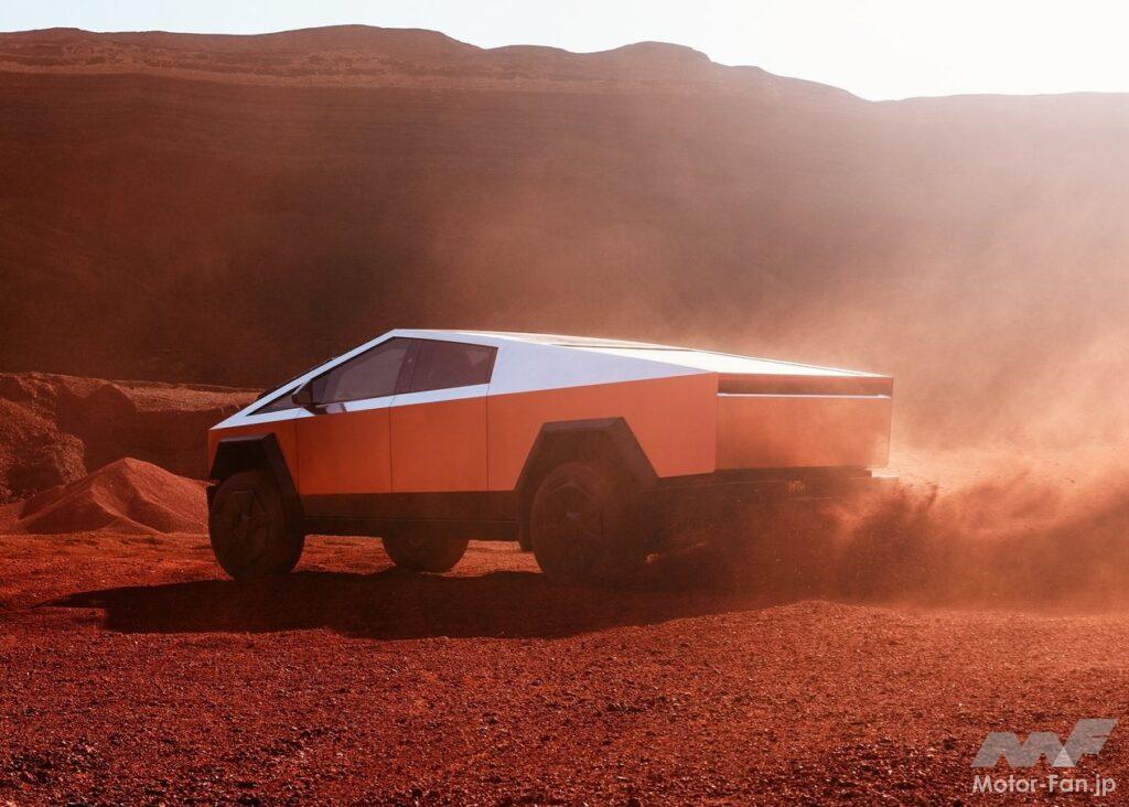 サイバートラックのパワートレインだが、基本モデルには後輪駆動と1つの電気モーターが搭載されている。ミッドレンジのツインモーター全輪駆動バージョンでは最高出力600ps、トリプル電気モーターを搭載したトップエンドバージョンは最高出力845psを発揮するが、クロスオーバーバージョンでも流用される可能性あるだろう。