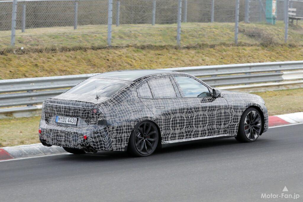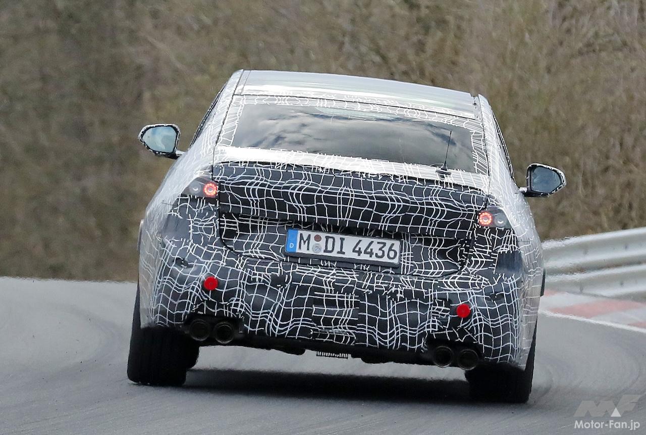 i3セダンと2028年型電気自動車M3のこれまでのスパイショットから、EV車には、ほぼ水平なベルトラインと、後部ドアの中央に前方に傾いたピラーがあることが分かっている。しかし、ニュルで目撃されたプロトタイプは、ベルトラインがキックアップしていることがわかる。