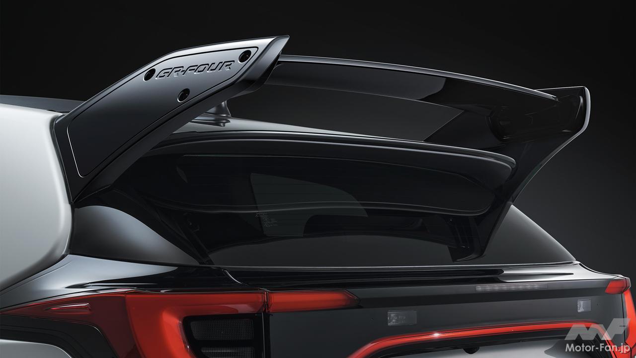全日本ラリー選手権参戦車において先行で開発し、GRMNヤリスに採用したカーボン製フードと同形状のダクト付きアルミフードを設定。高速走行中、エンジンルーム内の熱をダクトから放出し、冷却効果を高める。