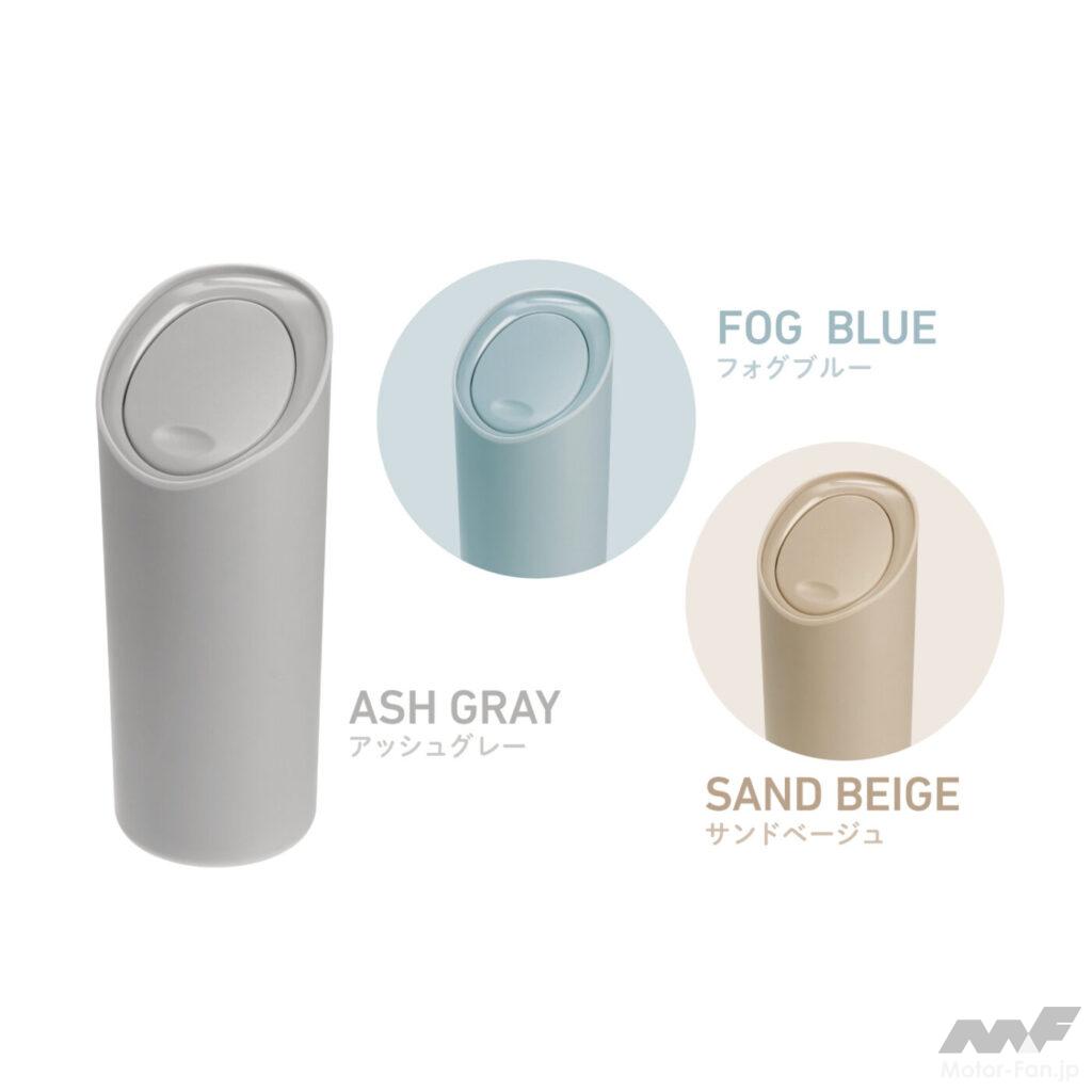 カーメイトの人気2アイテムに、すでに家庭用雑貨などで注目されている“くすみカラー”を採用したバージョンが登場。どちらもアッシュグレー、フォグブルー、サンドベージュの3色が用意されている。