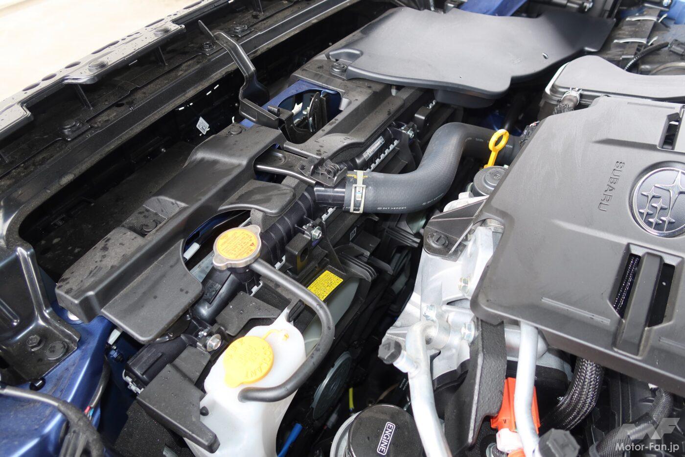 ストロングハイブリッド車のシステムは先行して投入されたクロストレックと同じだが、ラジエーターの仕様が異なる。クロストレックとフォレスターではボンネットの高さが異なるためで、高さに余裕のあるフォレスターはダウンフロータイプを採用。クロストレックは車両右上から左下に流すクロスフローとなっている。重力を素直に利用するダウンフローのほうが理に適ってはいるが、クロスフローでも冷却性能は充分に確保しており、ハイブリッドシステムとしての性能に差はない。トリビア的な情報というべきか。