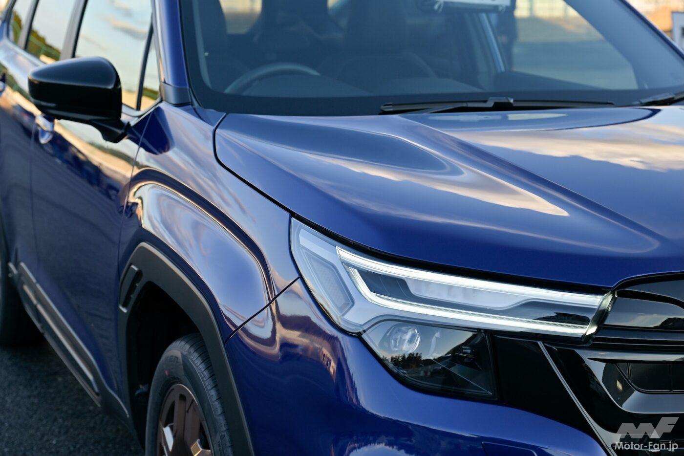 6代目となる新型スバル・フォレスターが公開された。過去2代はコの字型のヘッドライトとメッキモールで囲まれたヘキサゴン(六角形)グリルを採用していたが、新型はこれまでの流れとは決別した顔を採用しており、新鮮だ。取り回しのいい車両サイズは維持しながらもデザインを重視したのが新型の特徴だ。落ち着いて見えるのは、グリルだけでなくサイドウインドウのまわりからもメッキモールをなくし、ブラックを多用しているからだろう。