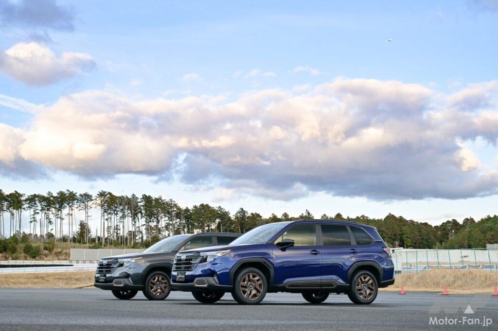 以上が、新型フォレスターをクローズドのコースでチョイ乗りし、「気持ち良かった。どうすればそういうクルマに仕立てられる?」との質問に対する回答である。新型フォレスターには2種類のパワートレーンが設定されており、2024年のクロストレックから適用が始まったストロングハイブリッドと、先代から引き継ぐ1.8L直噴ターボがある。