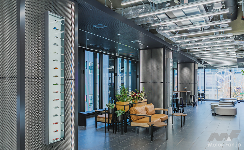 “MAZDA TRANS AOYAMA”では、カフェカウンターを完備。心地よい空間で、ドリンクや軽食、スイーツなども一緒に楽しむことができる。2Fの特別な空間で、友人や家族と、そして一人でゆったりと、ノミネート作品を眺めながら美味しいコーヒーと共にゆっくり過ごすことができる。