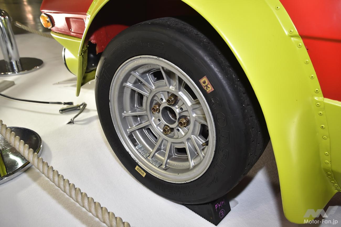 前後225/45R13サイズのピレリP7コルサクラシックを装着。ホイールはクロモドラ製。